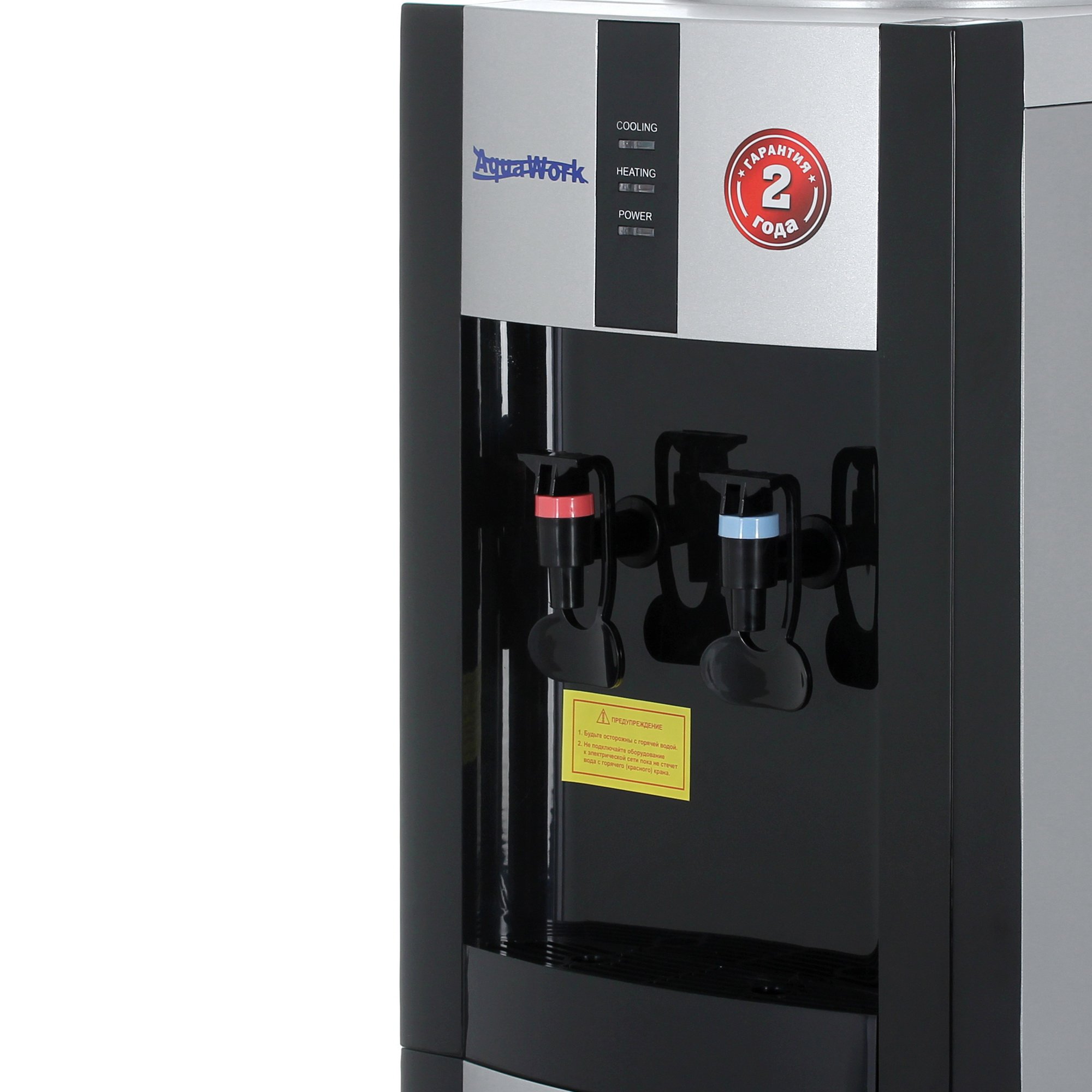 Aqua Work 16-LR оснащен резервуаром для горячей воды, что позволяет одномоментно налить 1 л воды. Благодаря мощности 700 Вт за 1 ч можно получить не менее 7 л горячей воды. Температура нагрева составляет 90-96 °С. Мощность кулера на уровне 90 Вт обеспечивает производительность охлаждения 2 л/ч. Минимальная температура охлаждения ‒ 10 °С. Для удобного наполнения чашки используются краники с механизмом «Нажим кружкой».