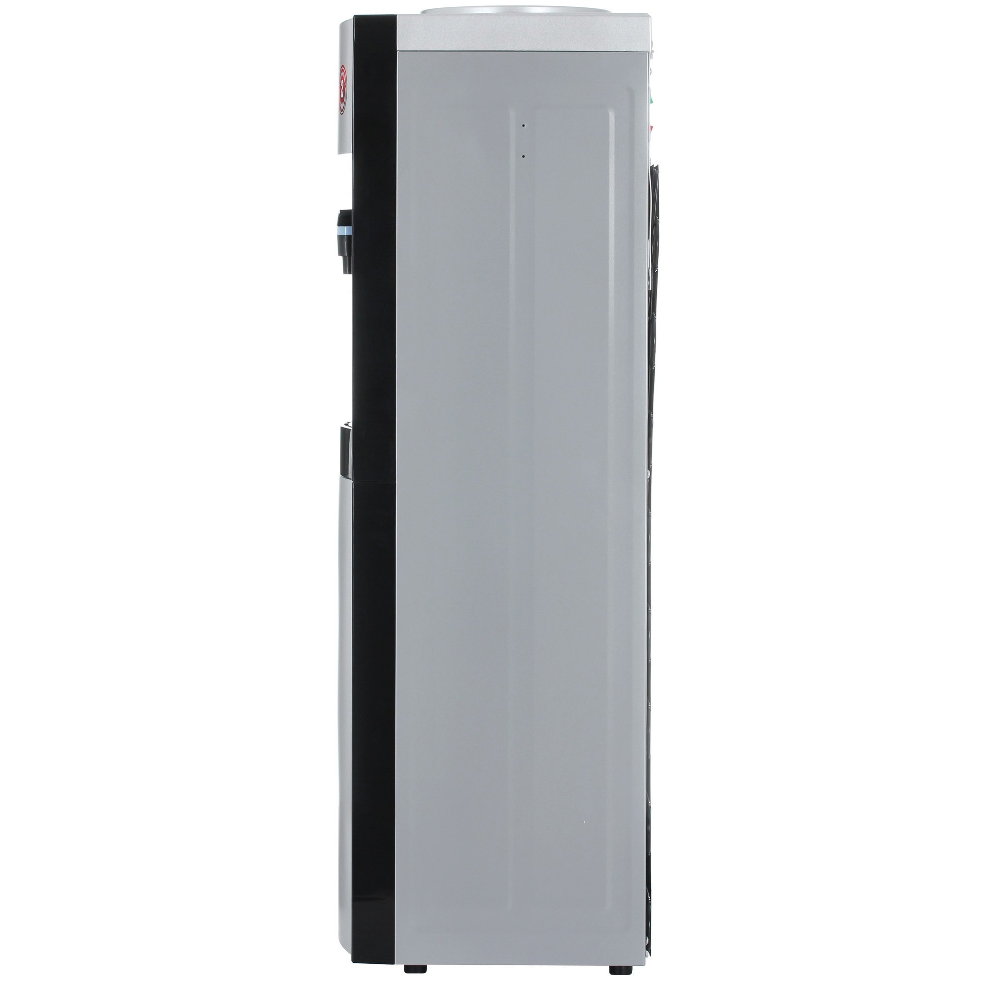 Диспенсер Aqua Work 16-LR выполнен в черном корпусе с серебристыми вставками. На боковых сторонах стального корпуса можно зафиксировать стаканодержатели со встроенными магнитами. Прибор размерами 31x96x31 см имеет напольную конструкцию, что делает его удобным для оснащения офисов, медицинских учреждений и других организаций. Модель с верхним размещением бутыли предназначена для подачи горячей и холодной воды. Для охлаждения кулер использует электронную систему, в основе которой ‒ эффект Пельтье. Он заключается в том, что при протекании тока через контакт 2 проводников возникает разность температур.