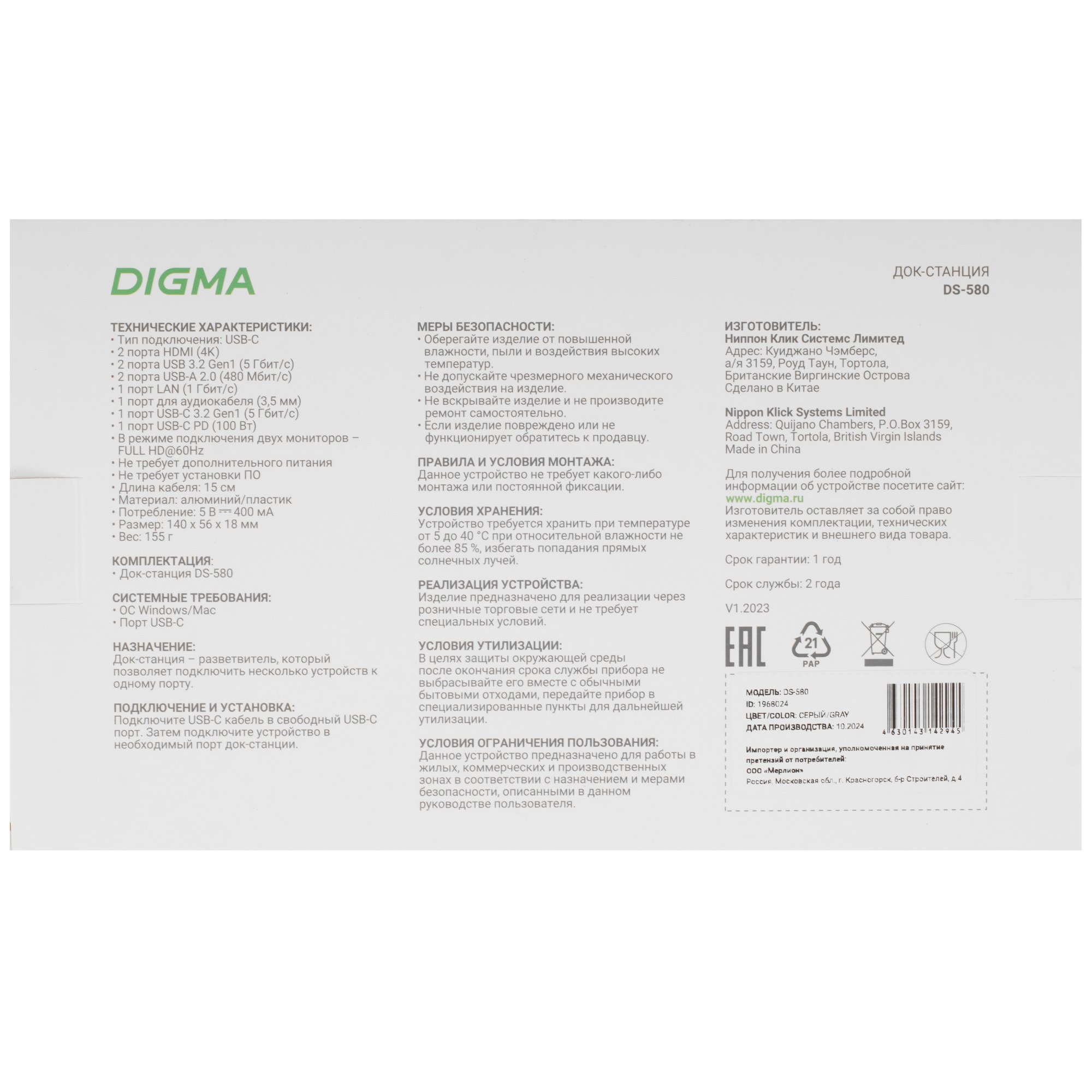 Digma DS-580 – это удобная док-станция, которая значительно упрощает подключение различных устройств к вашему компьютеру. Она обеспечивает надежное соединение и позволяет легко управлять периферийными устройствами, делая вашу работу более продуктивной и комфортной. Этот аксессуар идеально подходит для тех, кто ценит порядок на рабочем месте и нуждается в универсальном решении для подключения.
