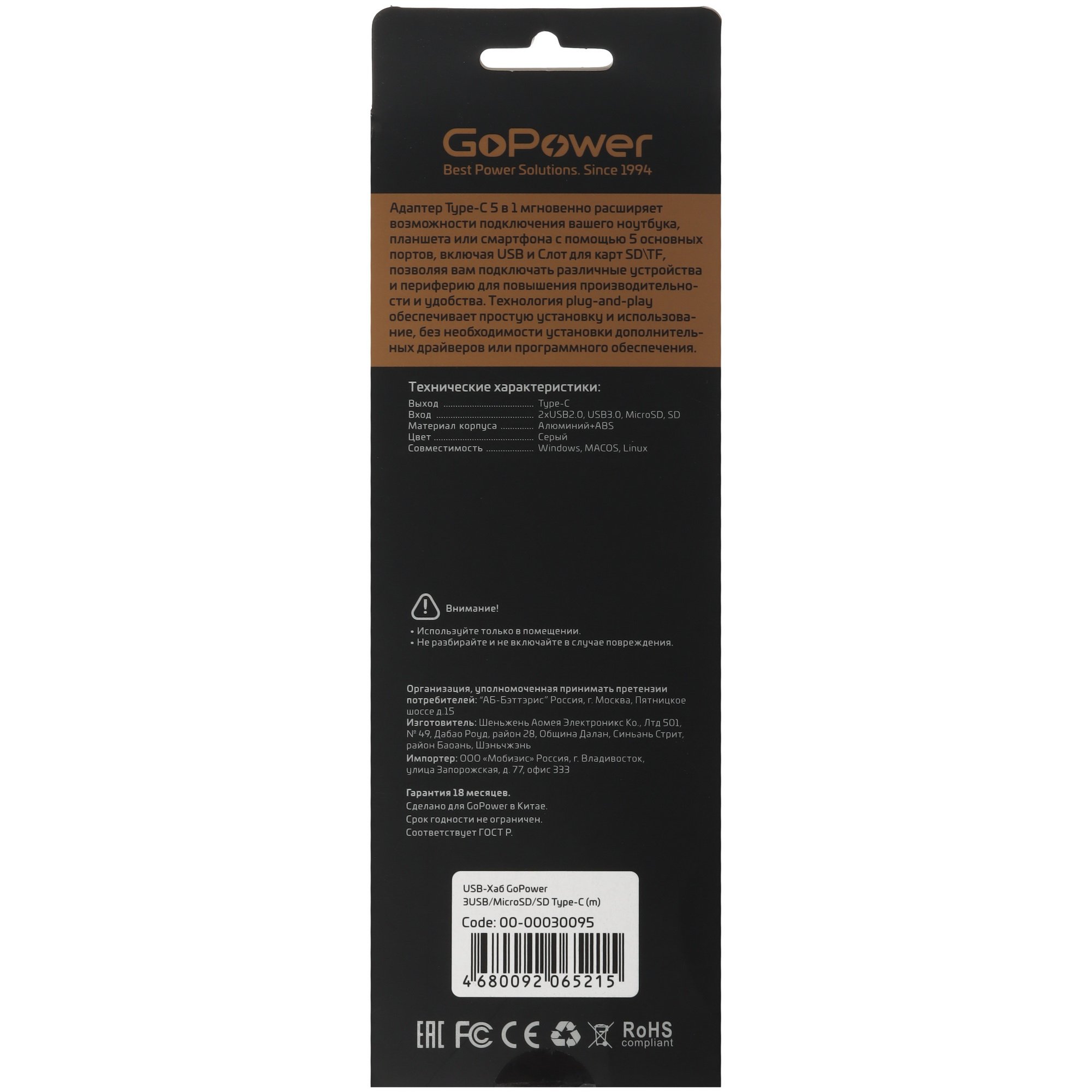 USB-Хаб GoPower GPH5-1 3USB/MicroSD/SD Type-C (m) USB3.0 (1/100)