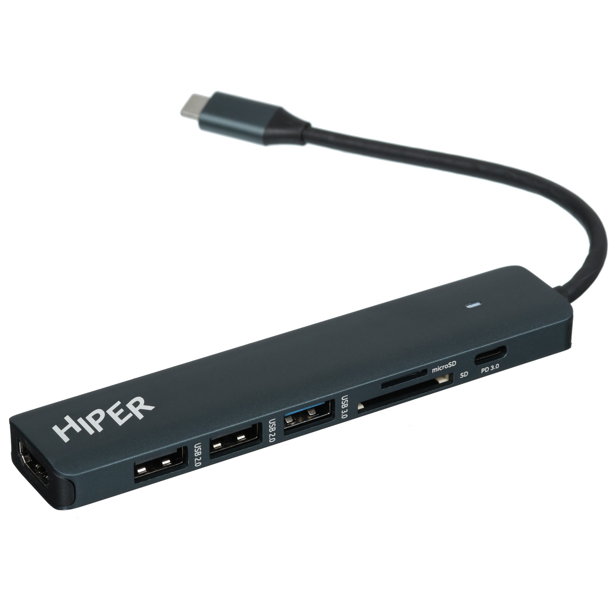Док-станция HIPER Docking station USB-C HUB 6in1 (1*USB-C 100W PD, 1*HDMI 4K@60Hz, 2*USB-A 3.0 (5Gbps data), 1*USB-C 3.0 (5Gbps data), 1*RJ45 Gb)