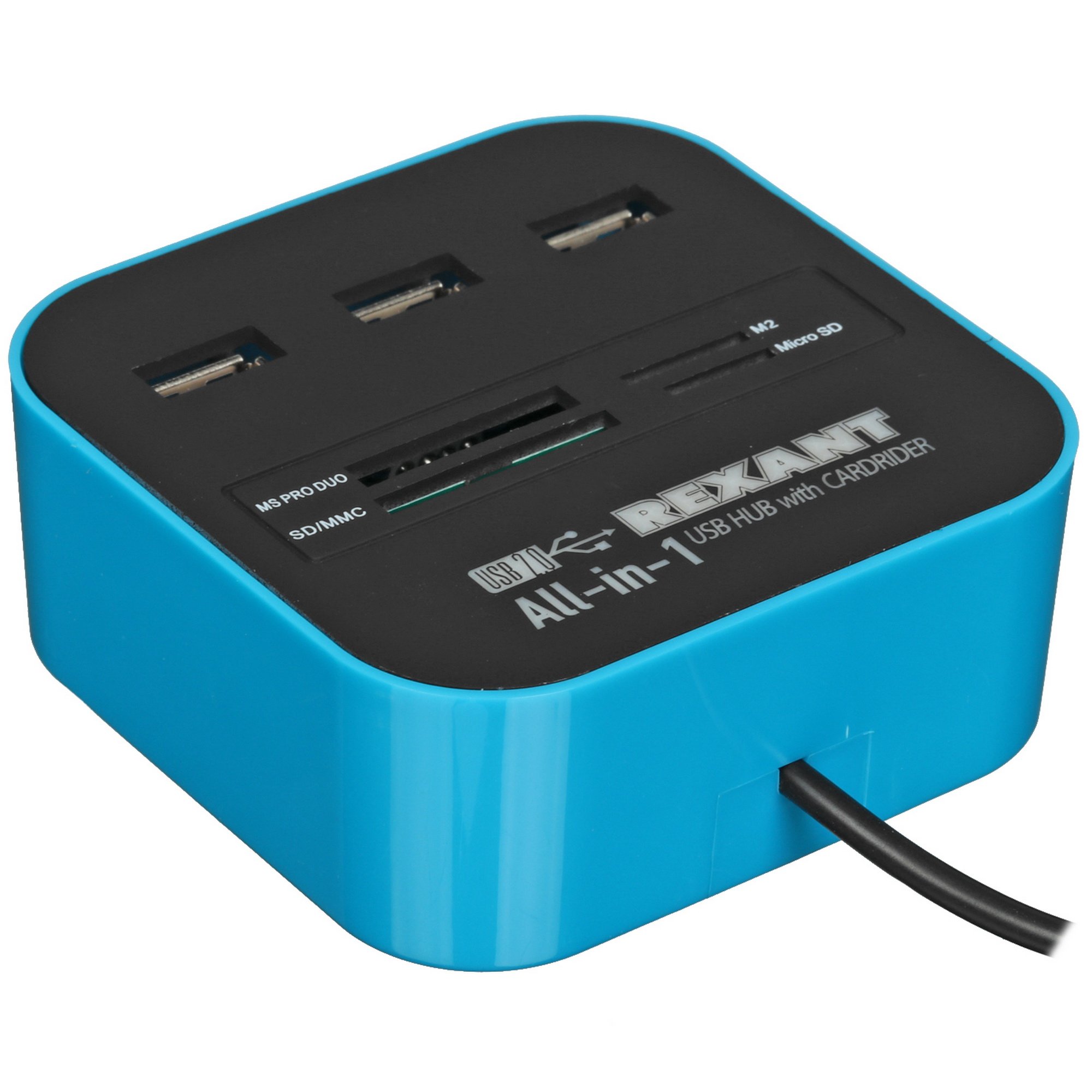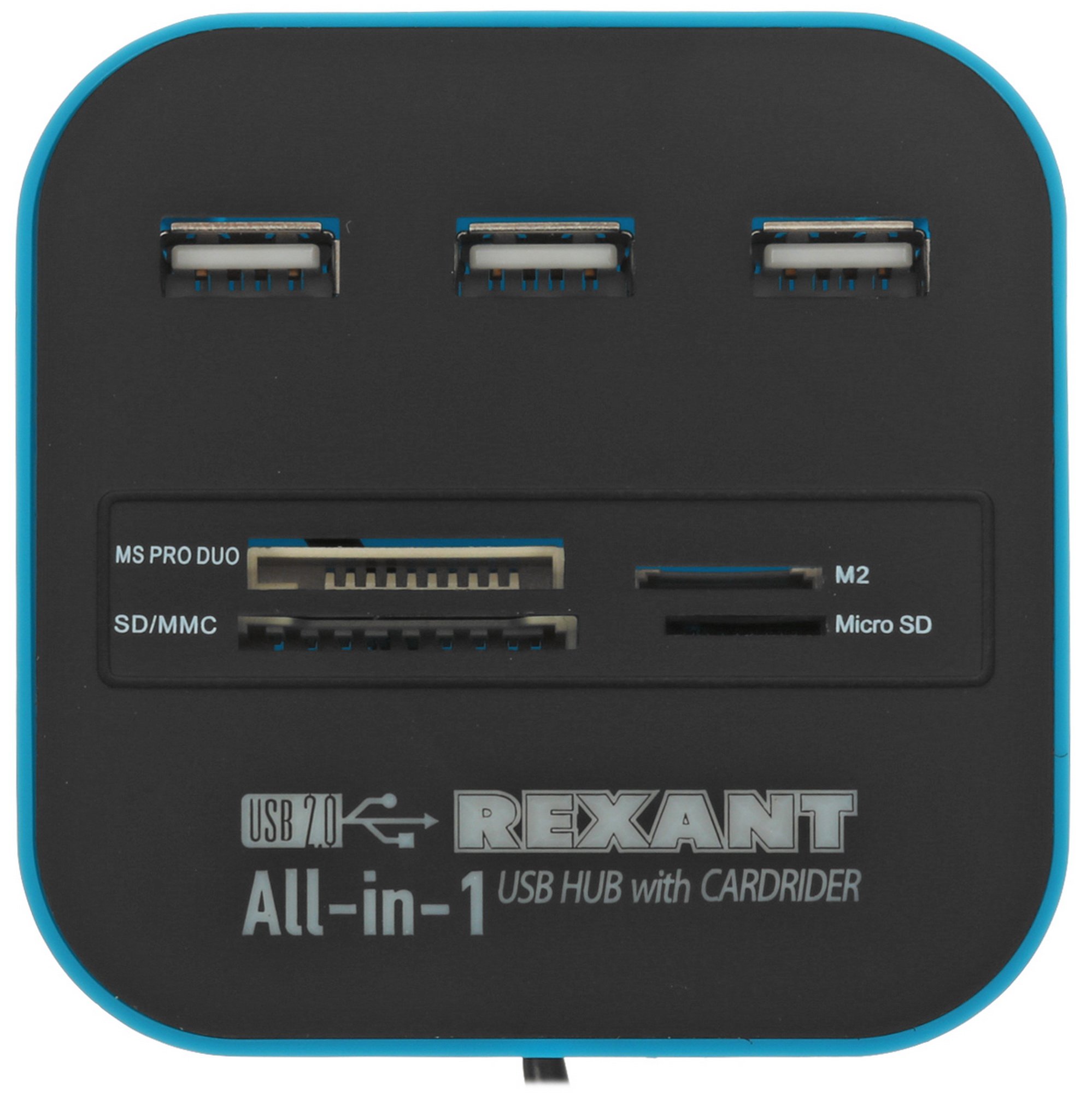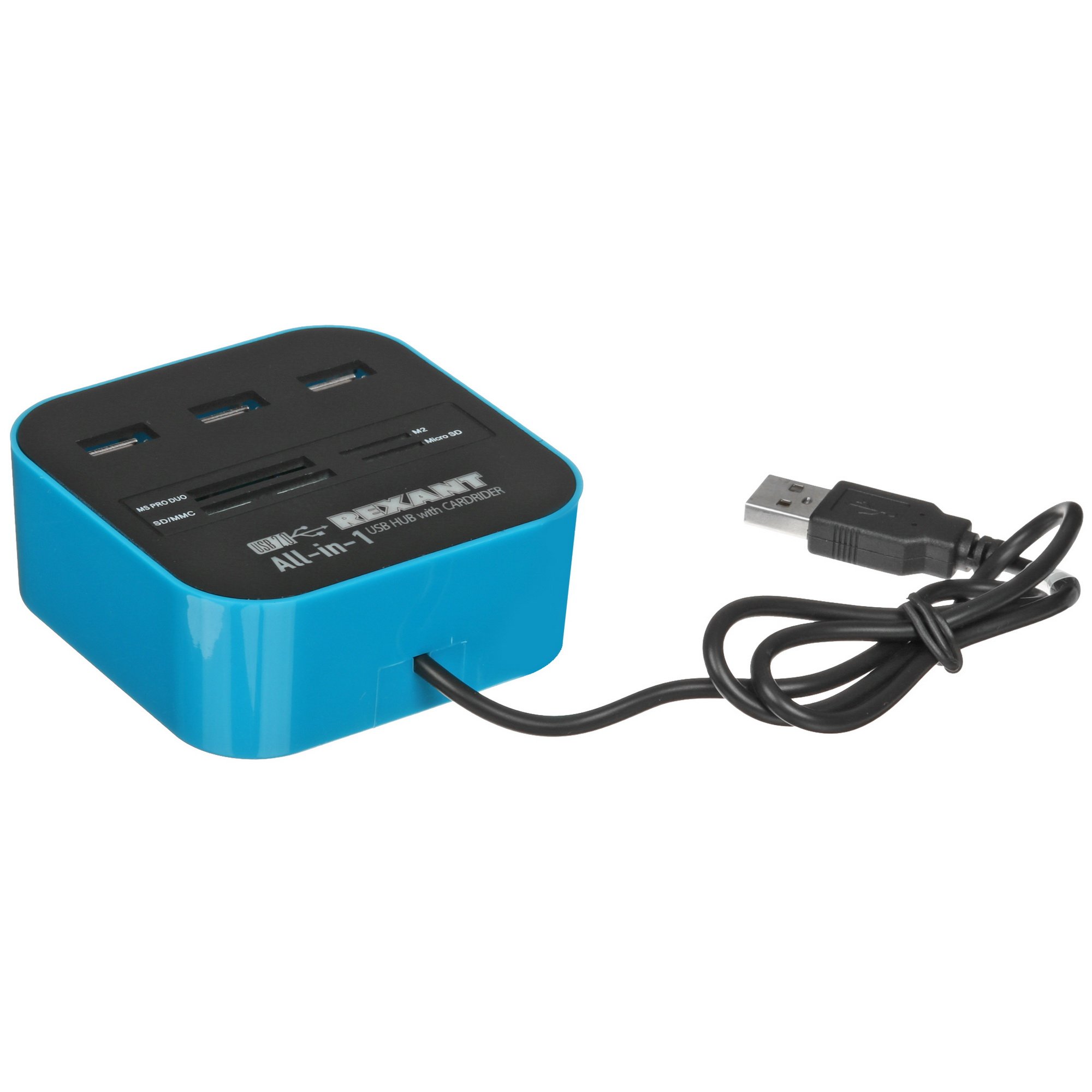 Разветвитель USB на 3 порта+картридер (все в одном) черный Rexant