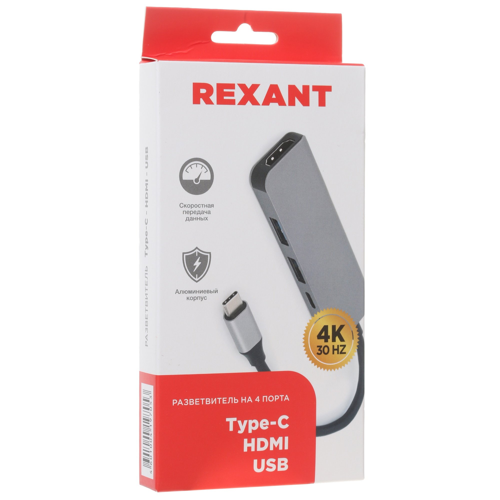 Разветвитель USB Type-C на 4 порта: 1xHDMI/2xUSB 3.0 PD/1xType-C PD Rexant