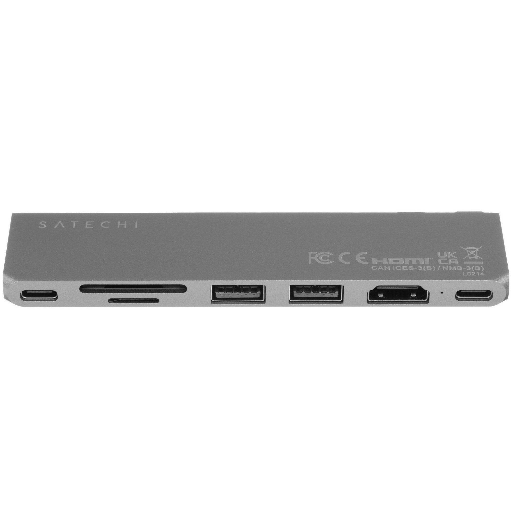 USB-хаб Satechi 6-in-1 USB-C Slim Multiport Adapter (Type-C, HDMI, 2x Type-A, SD, microSD), до 75 Вт, Серый Док-станция ST-P6SM