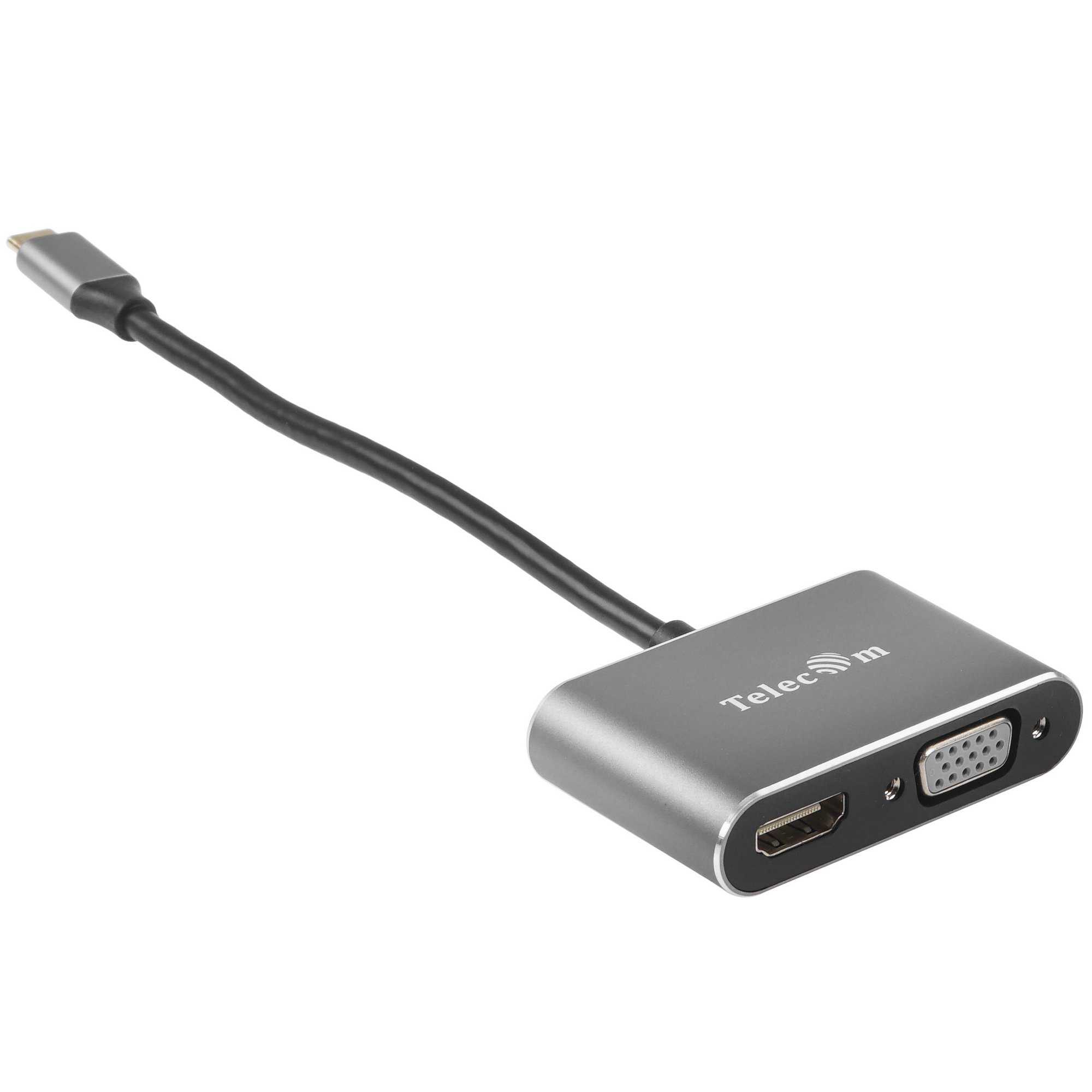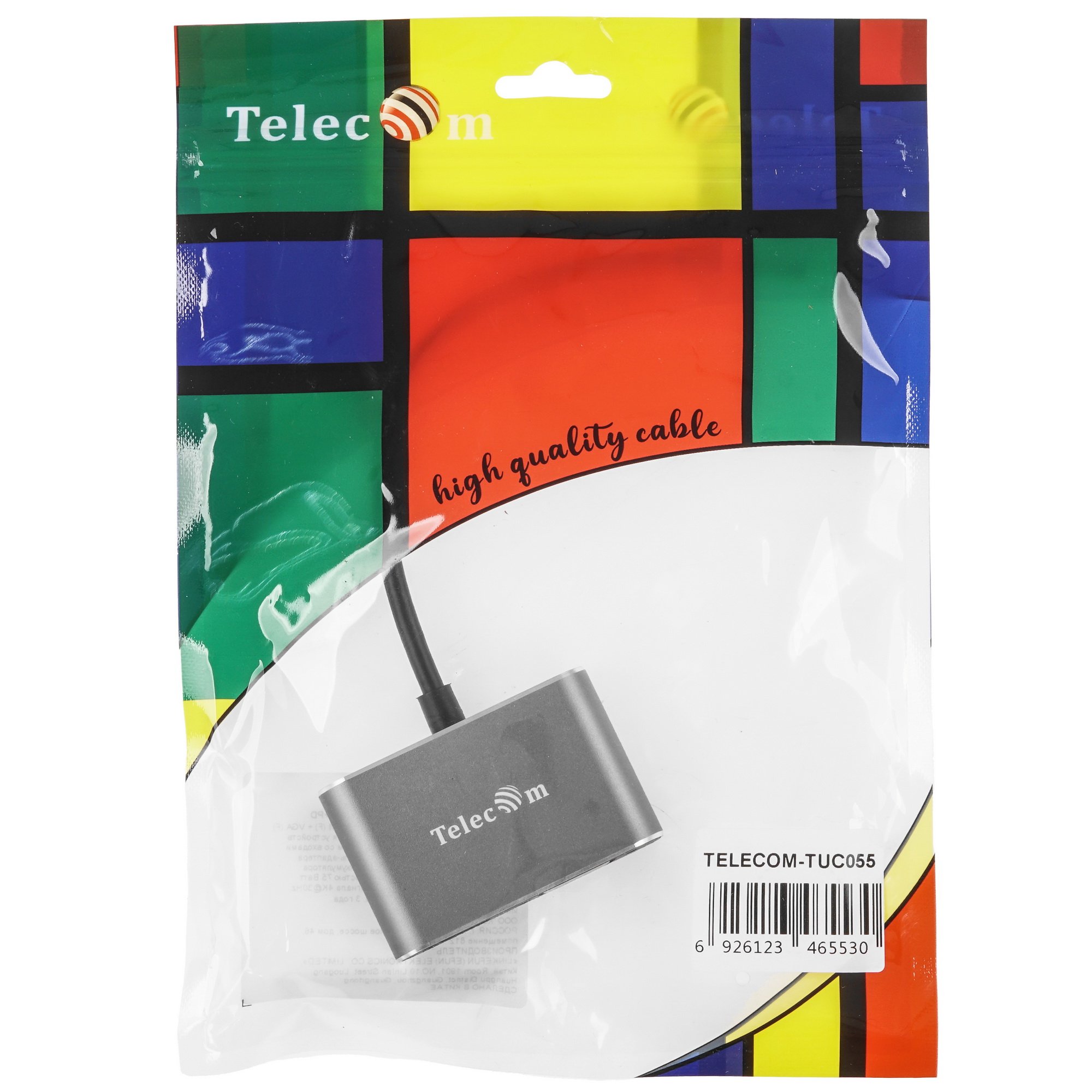 Кабель-концентратор USB3.1 TypeCm -->HDMI+USB3.0+PD+VGA Alum Grey 4K@30Hz, Telecom<TUC055>