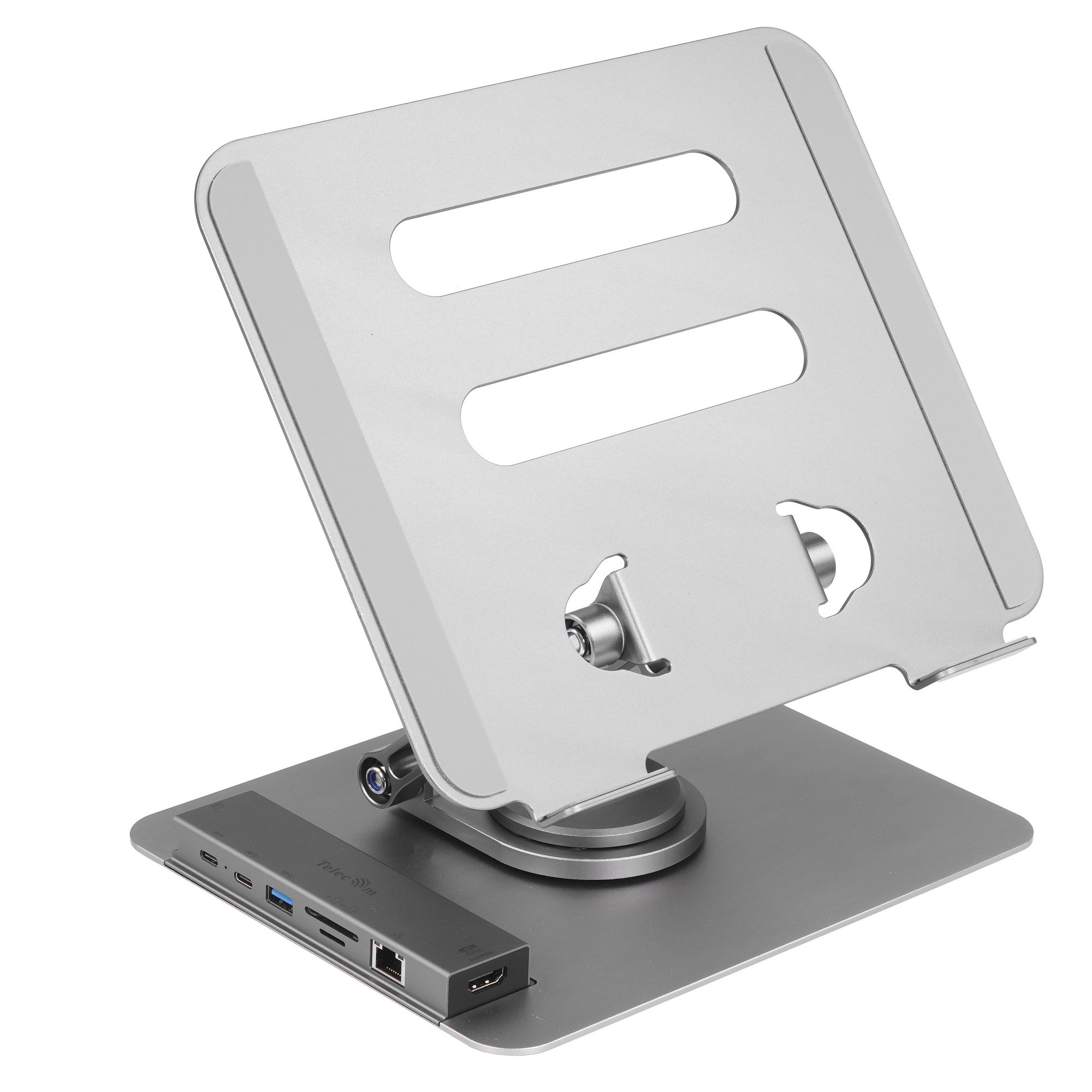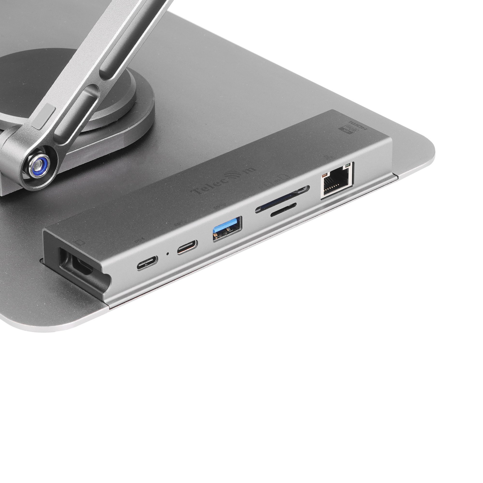 Док-станция Telecom изготовлена с подставкой для телефона. С помощью устройства вы сможете подключить телефон к интернету через гигабитный оптический порт, к картам памяти micro SD и к другим устройствам через разъемы HDMI, Type-C и Type-A. Модуль быстрой зарядки позволит зарядить ваше мобильное устройство за 15 мин на 30%.