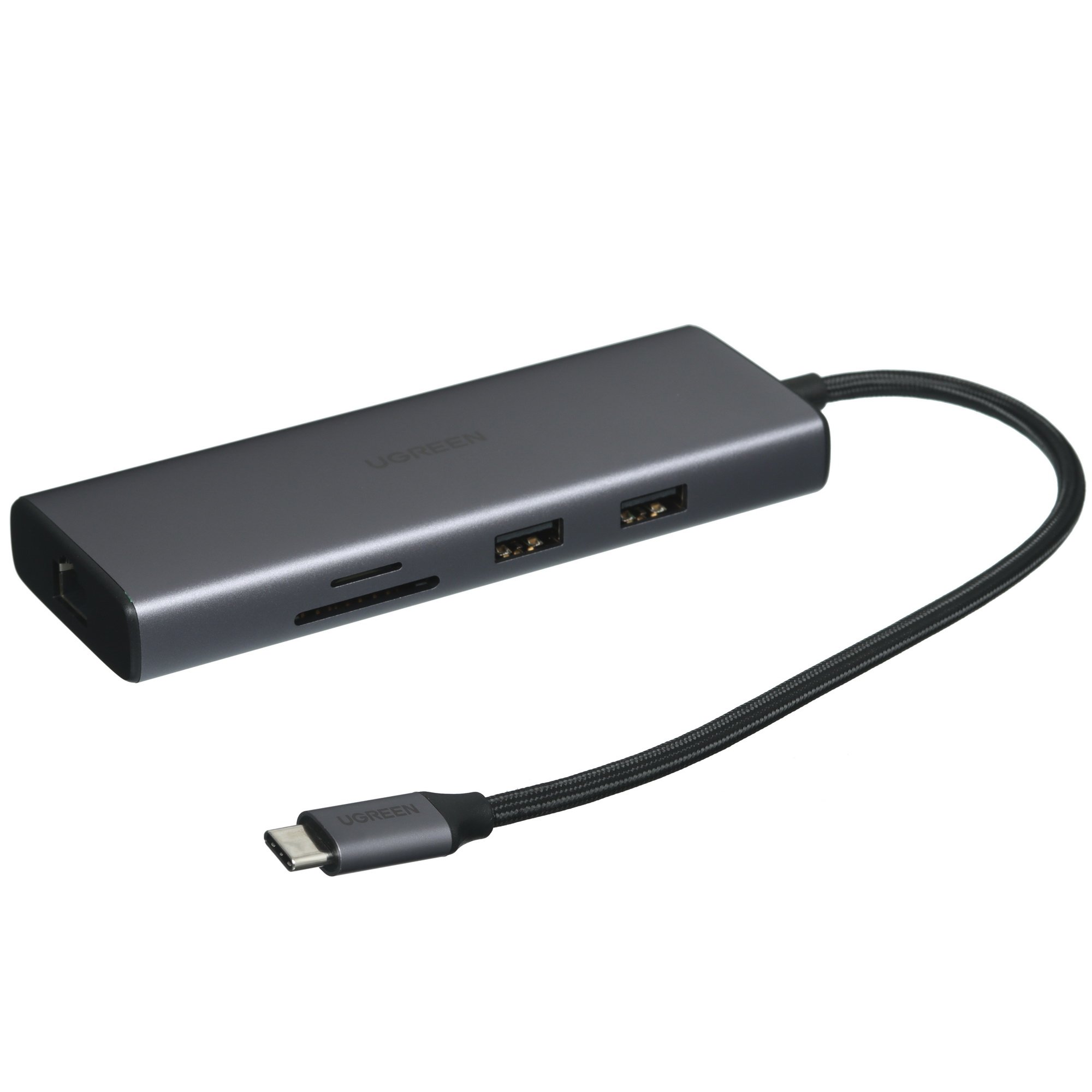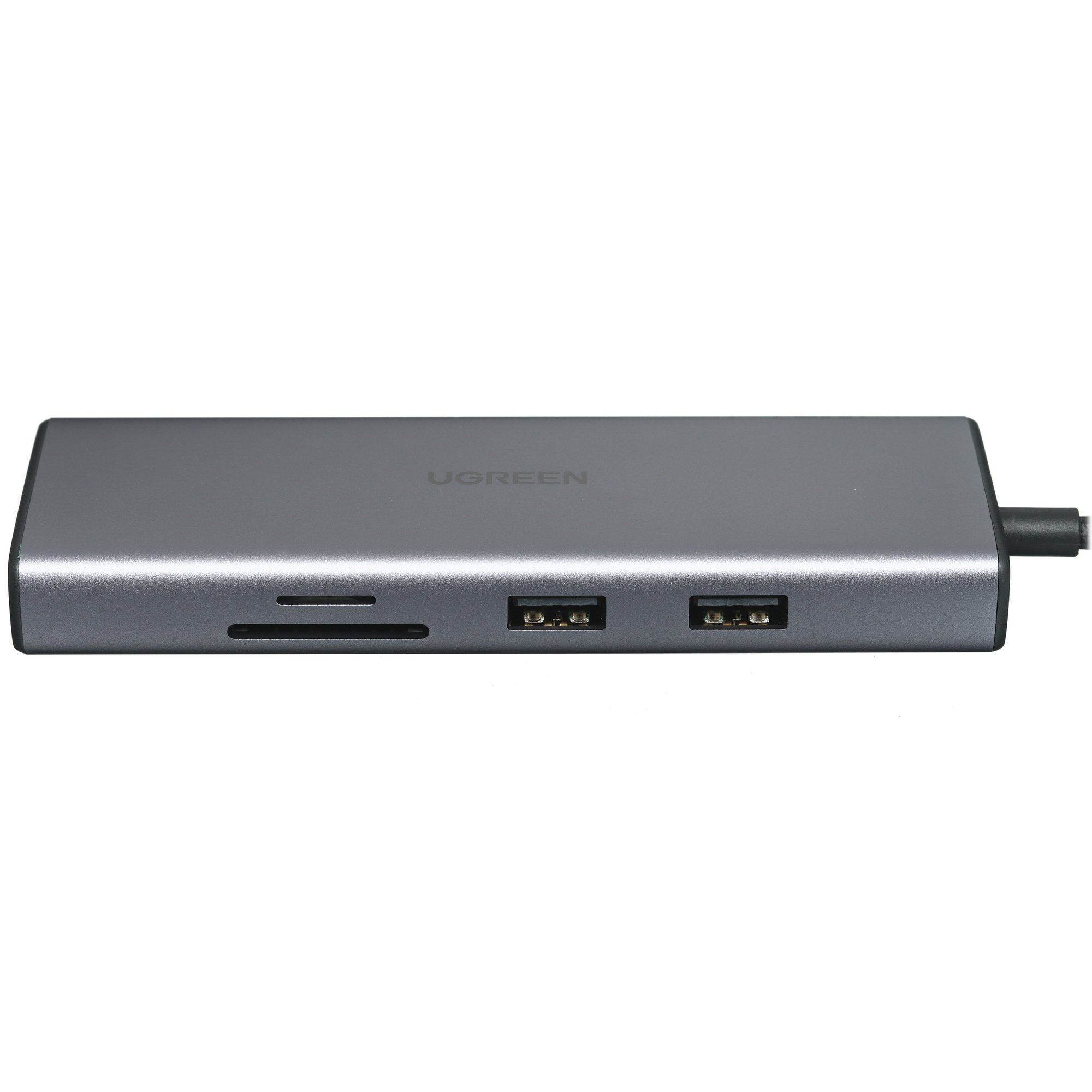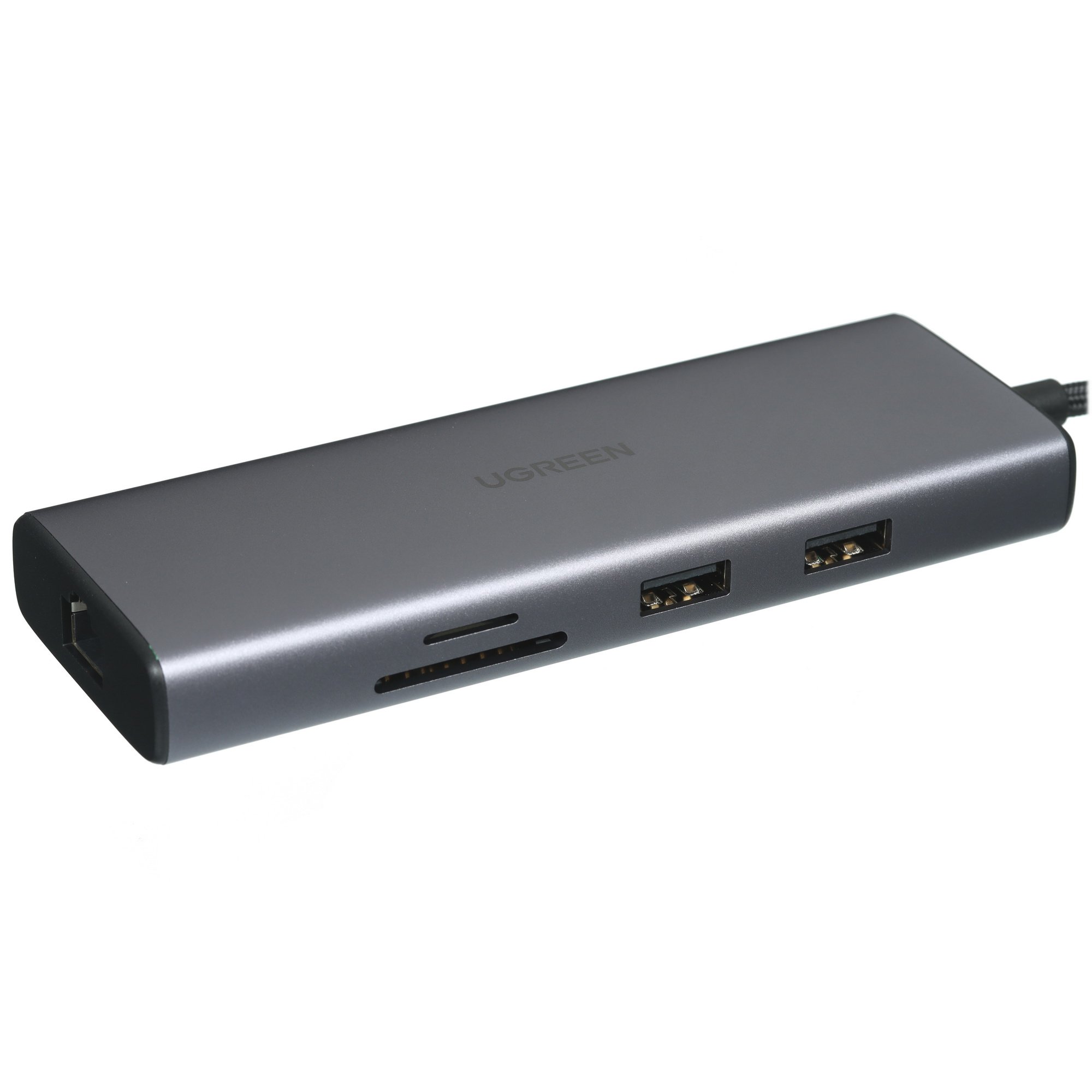 Док-станция UGREEN CM490 – универсальное устройство с набором портов, которое расширит функционал вашего ноутбука. Модель облачена в металлический корпус серебристого цвета с компактными размерами для удобного размещения рядом с портативным компьютером. Для подключения к ноутбуку док-станция UGREEN CM490 использует интерфейс USB Type-C. В ее конструкции присутствует LAN-порт, который обеспечивает скорость обмена данными до 1 Гбит/с при проводном подключении к интернету. Встроенный кард-ридер позволит считывать данные с карт памяти типоразмеров SD и micro SD.