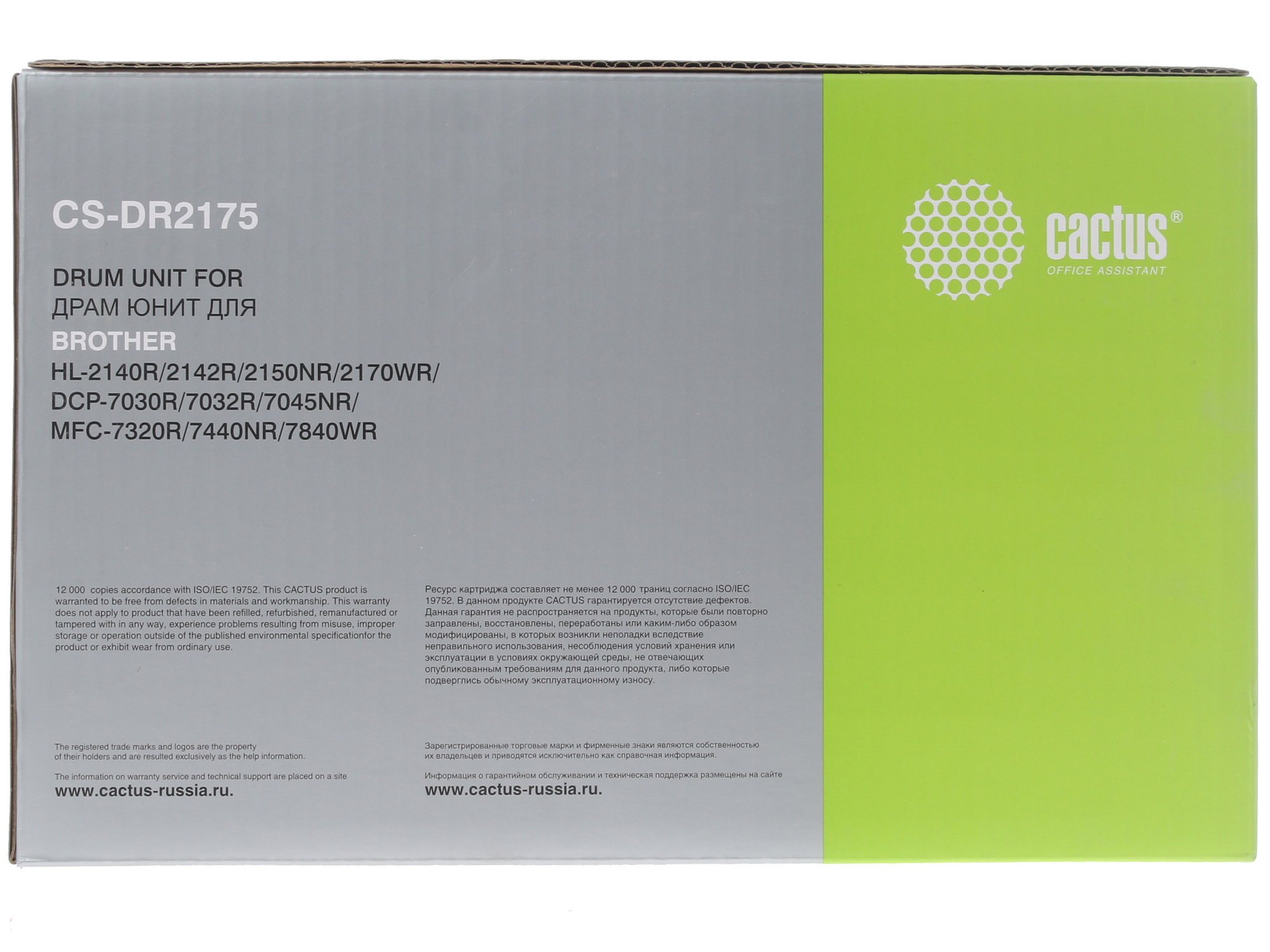 Рассчитан фотобарабан на 12000 страниц. Поэтому он лучше всего подходит для использования в принтерах, расположенных в небольших организациях и офисах. Cactus CS-DR2175 предназначена для принтеров Brother моделей DCP-7030R, DCP-7045NR, HL-2142R, HL-2170WR, DCP-7032R, HL-2150NR, MFC-7840WR и других.