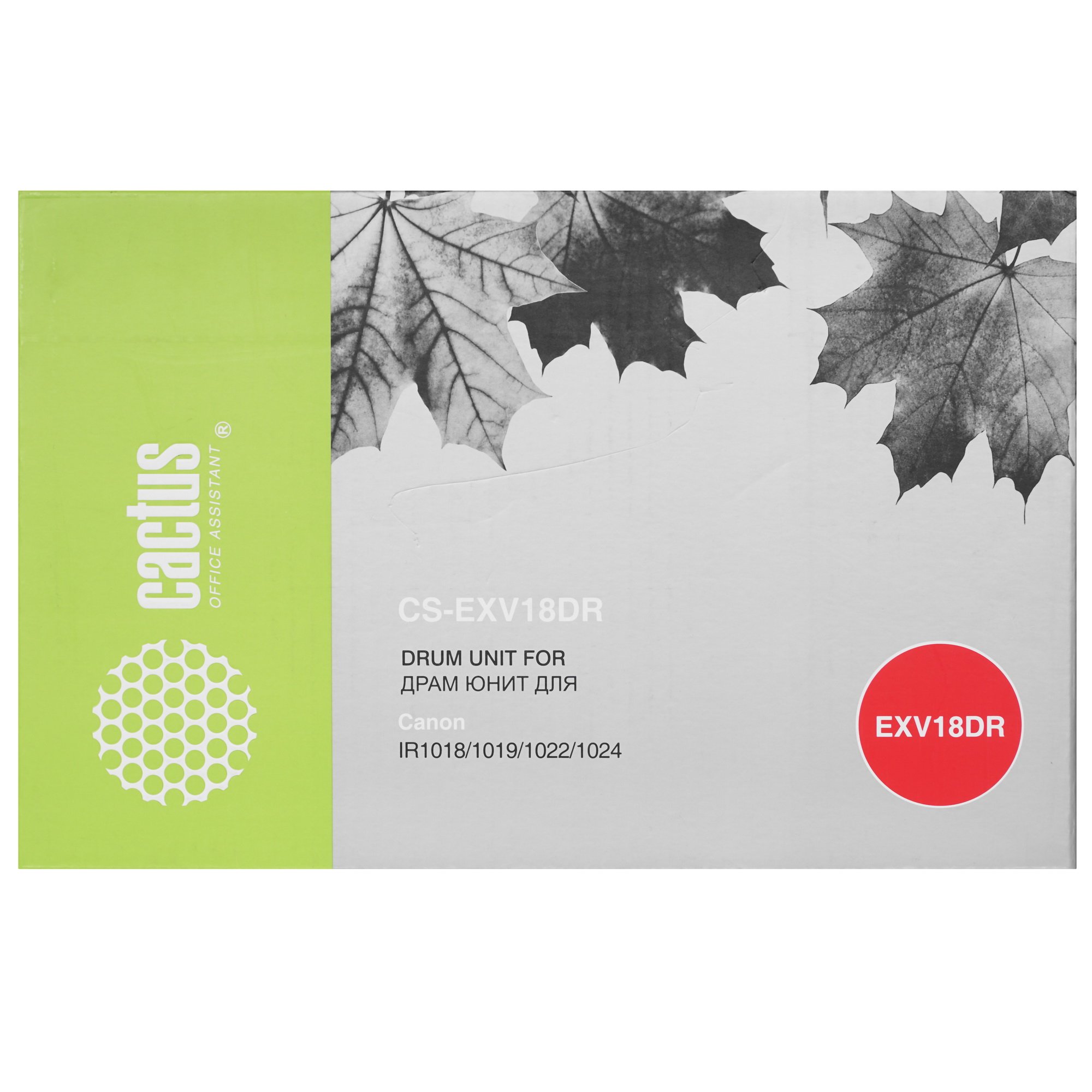 Драм-картридж Cactus CS-EXV18DR подходит для установки в лазерный принтер или МФУ Canon. Ресурса фотобарабана хватит для печати 26900 страниц А4, при условии заполнения листа на 5%. Если вы планирует печатать больше картинок, чем текста, то ресурс картриджа хватит на меньшее количество страниц.