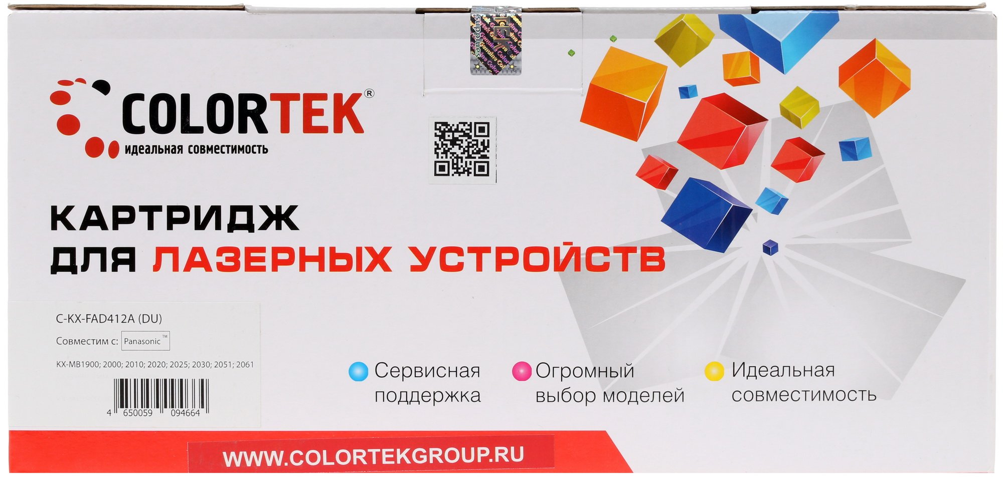Фотобарабан лазерный Colortek KX-FAD412A является эффективным расходником для многофункциональных устройств бренда Panasonic, относящихся к серии KX. Фотобарабан практически по всем характеристикам соответствует модели Panasonic KX-FAD412A, которая является оригинальной для совместимых печатно-копировальных устройств. Позволяя экономить ваши средства, совместимый компонент обладает очень значительным рабочим ресурсом: он позволит отпечатать в высоком качестве до 6000 страниц.