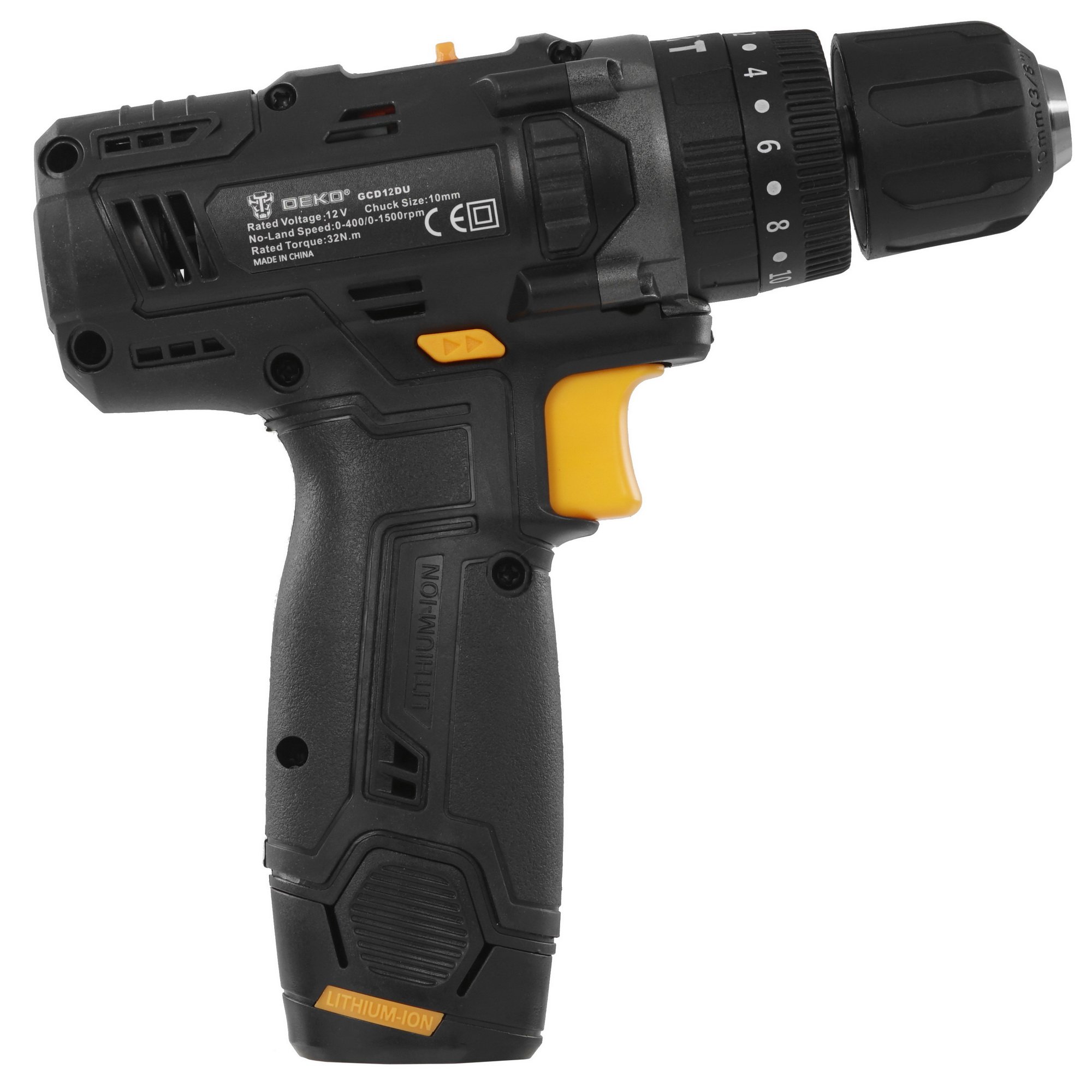 Дрель-шуруповерт аккумуляторная Deko GCD12DU, 12В, 1 АКБ, Ударная