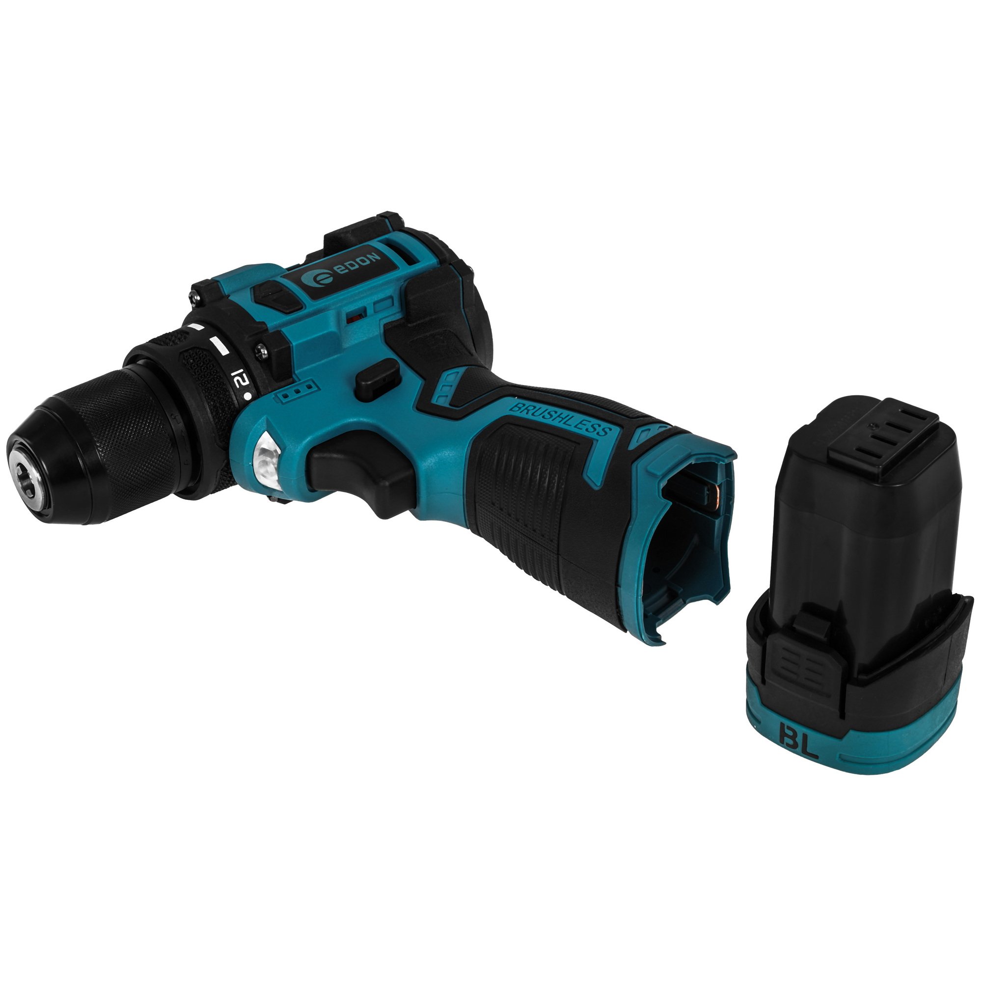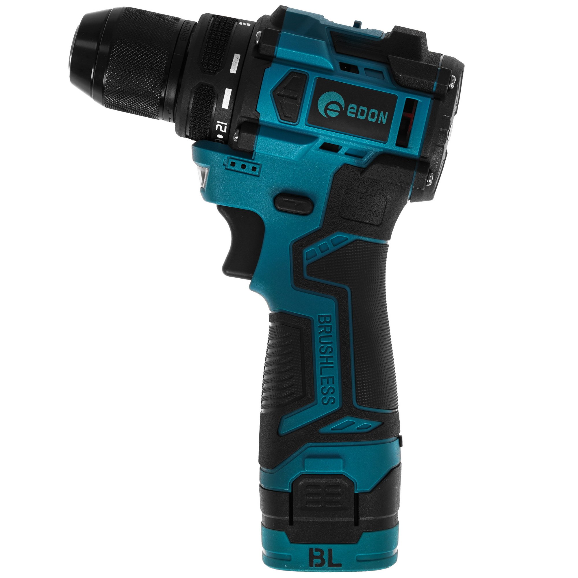 Дрель-шуруповерт аккумуляторная бесщеточная EDON AD-16CBL, предназначена для закручивания, отворачивания винтов и шурупов, сверления отверстий в различных конструкционных материалах, имеет функцию удара и соответственно возможность сверления в бетоне, кирпиче, пено-блоке и других строительных материалах.