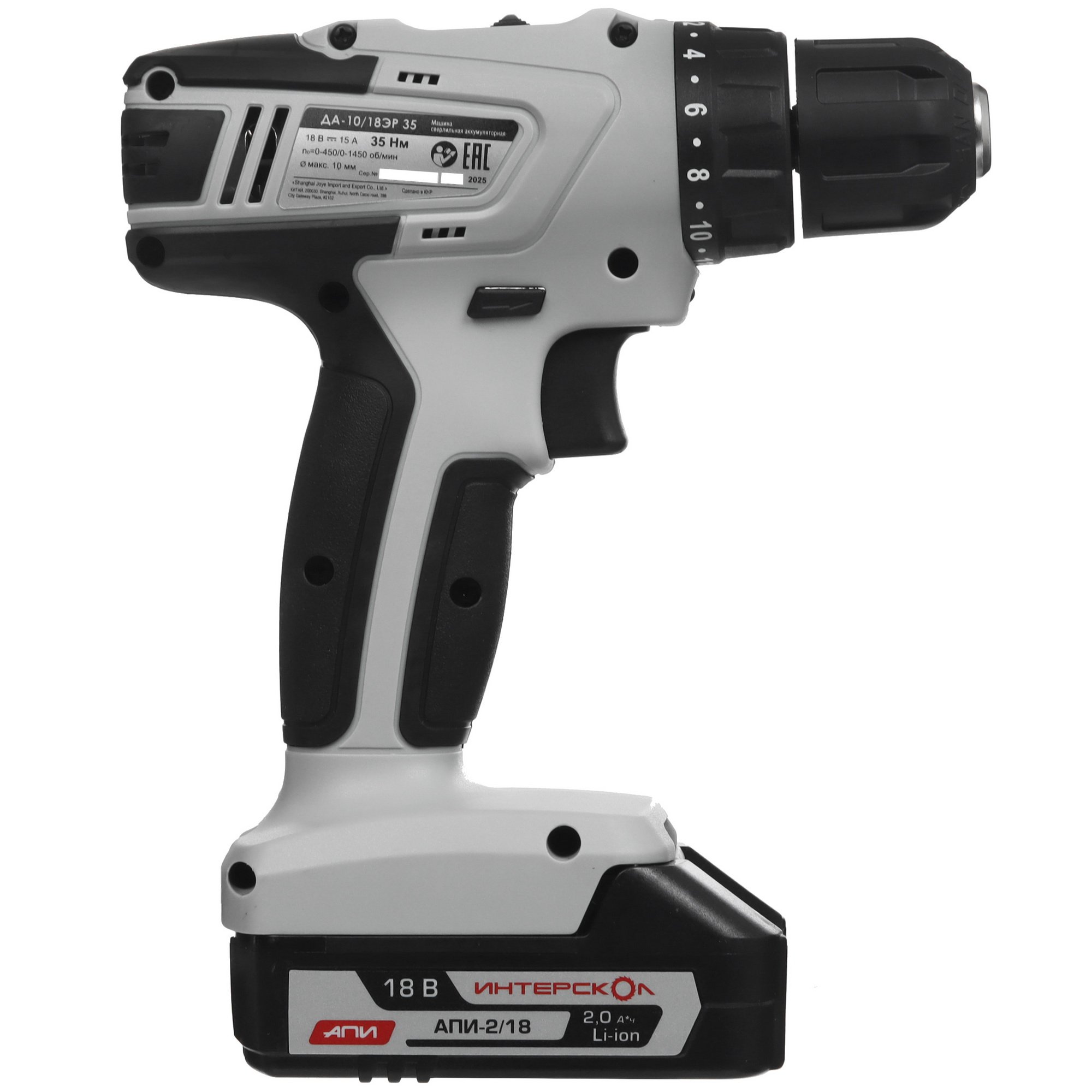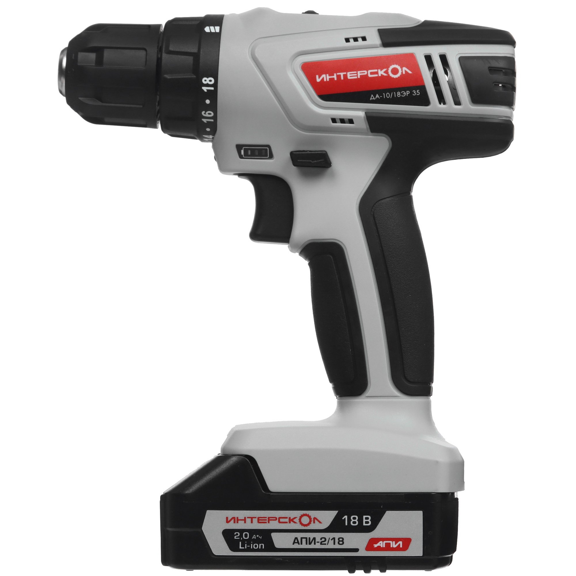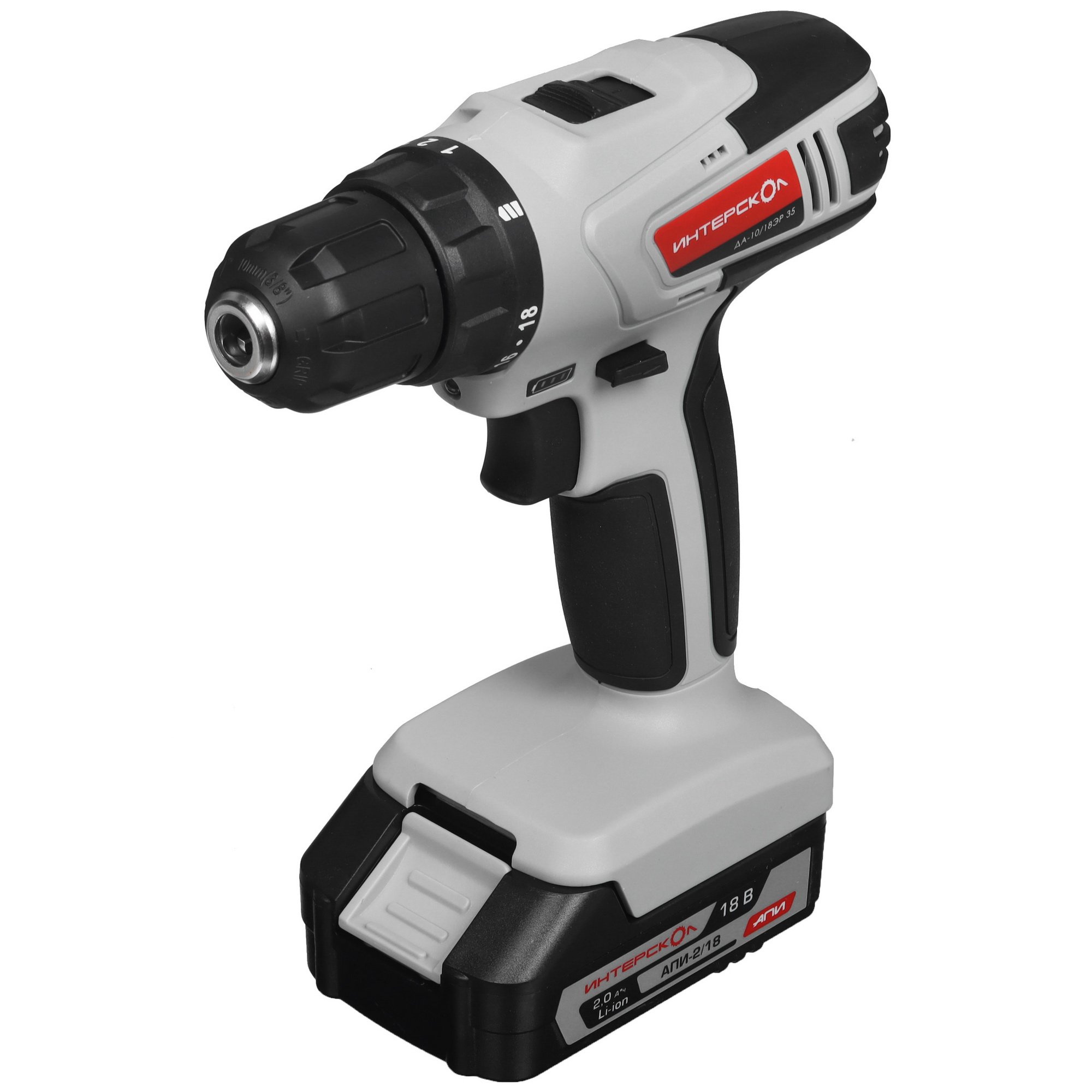 Дрель-шуруповерт аккумуляторная ИНТЕРСКОЛ ДА-10/18ЭР 35 ПРОМО, 18В, 1400 об/мин, с 1 АКБ 2 Ач и ЗУ