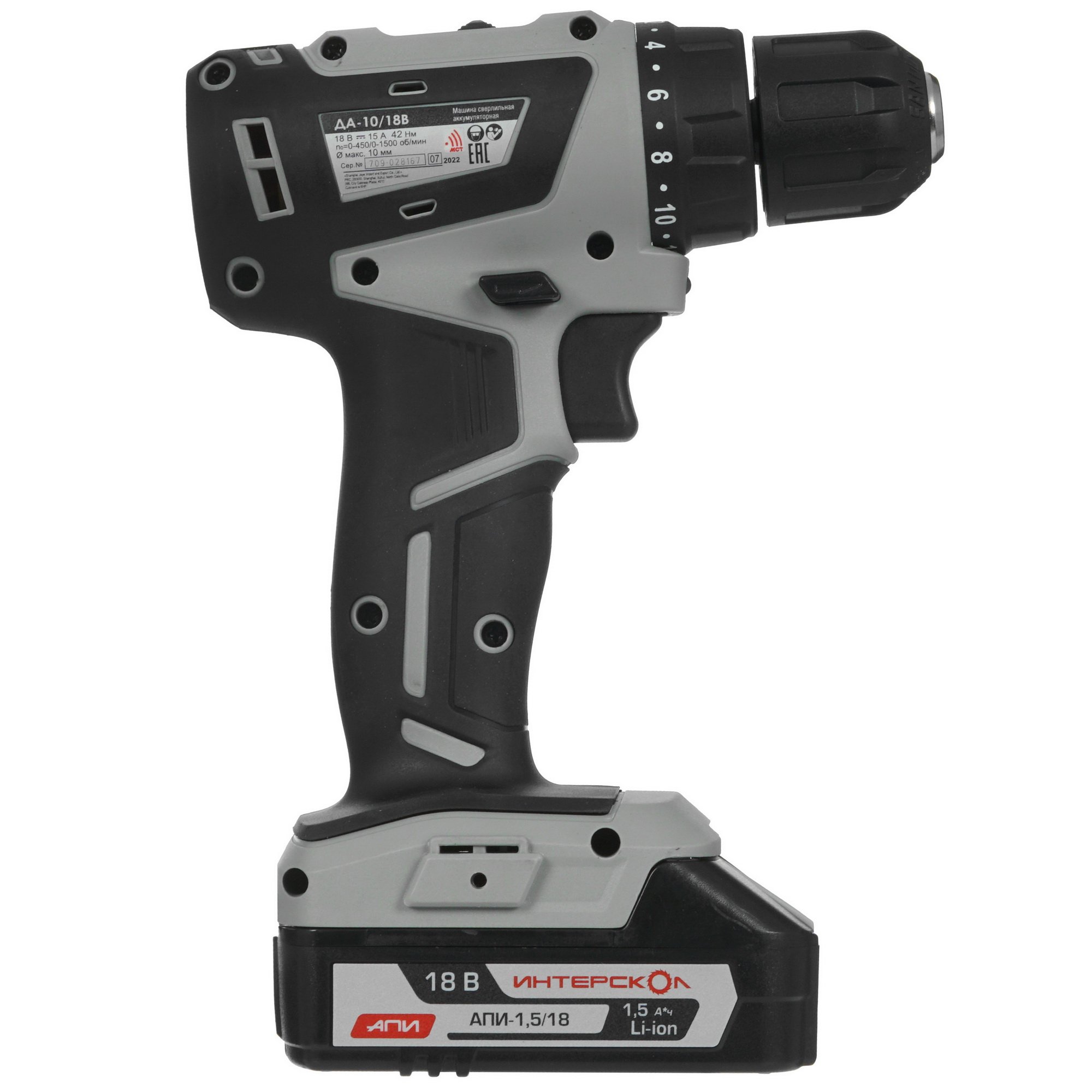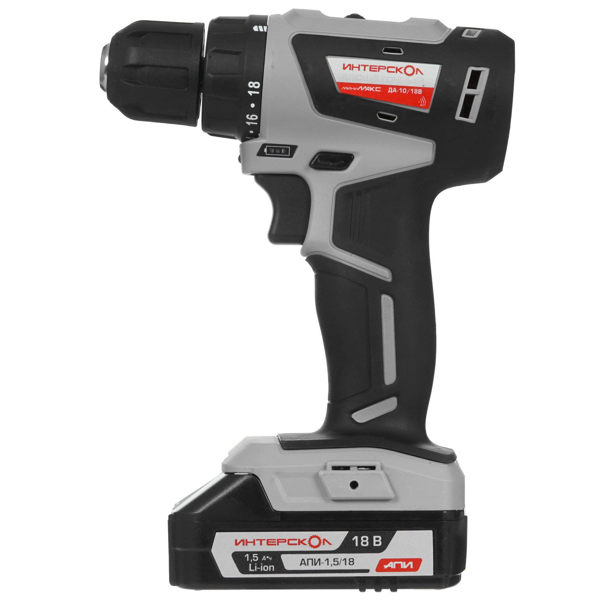 Дрель-шуруповерт аккумуляторная ИНТЕРСКОЛ ДА-10/18В, Аккумуляторная, 18В, 2 АКБ, Кейс