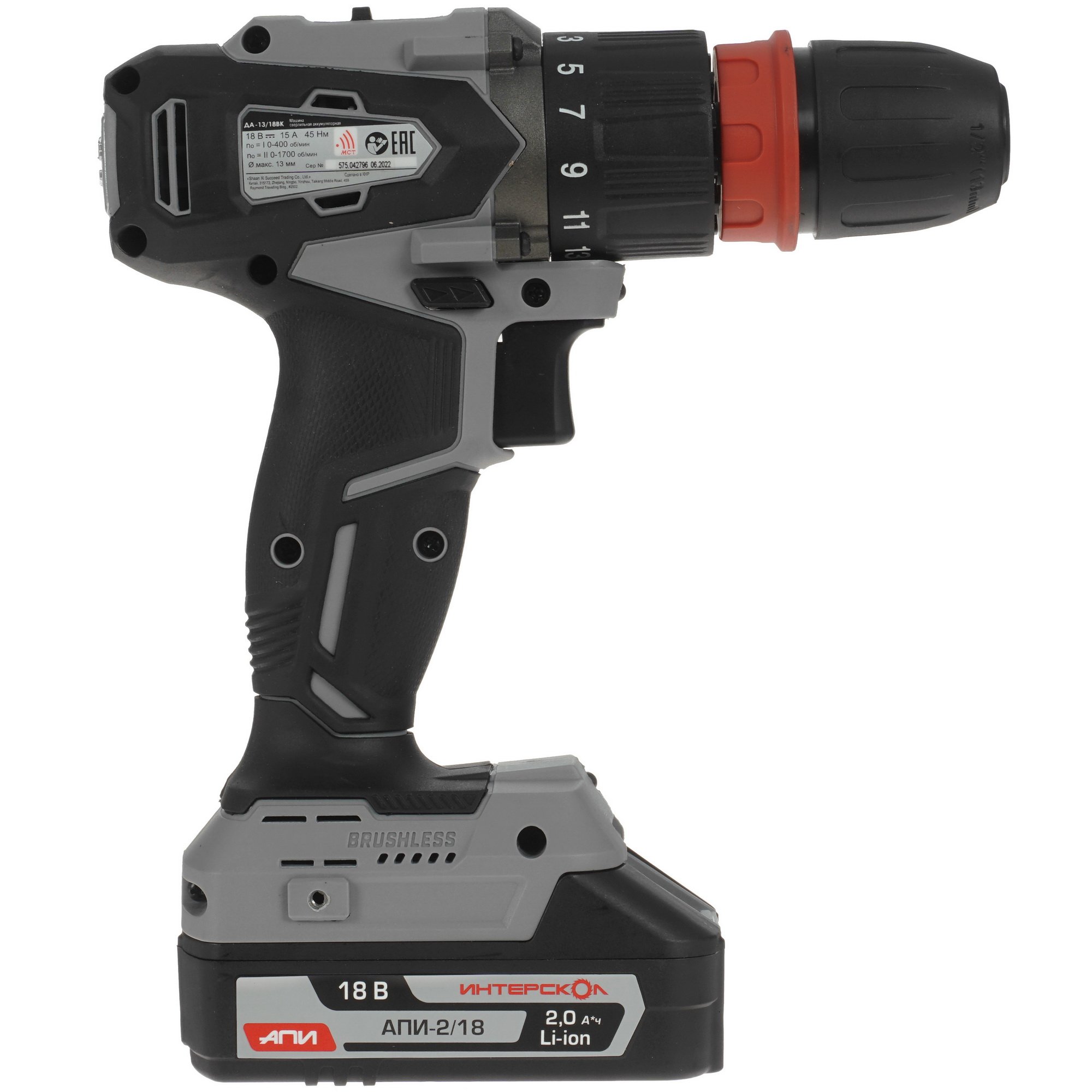 Дрель-шуруповерт аккумуляторная ИНТЕРСКОЛ ДА-13/18ВК, 18 В, 2 А·ч, аккумуляторная