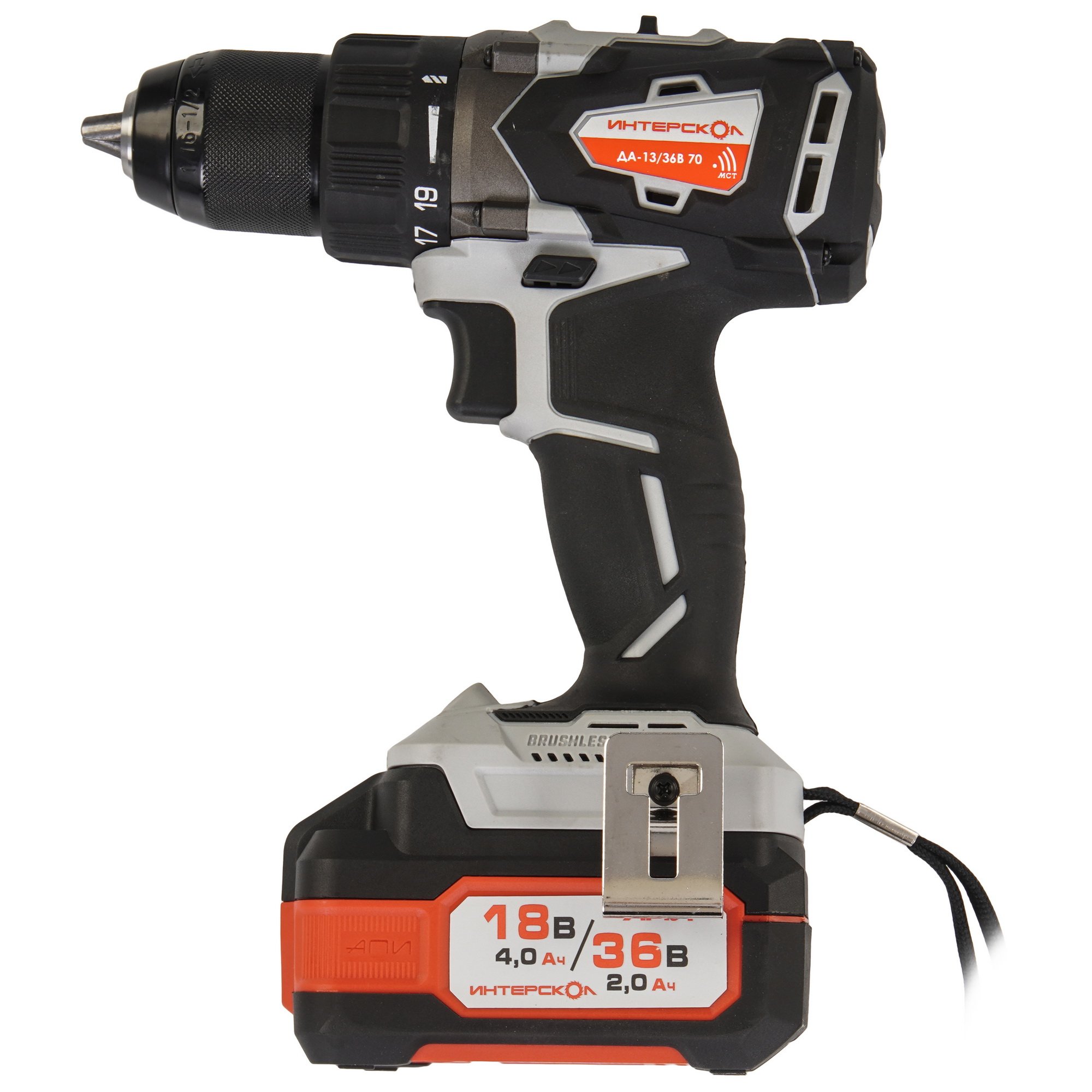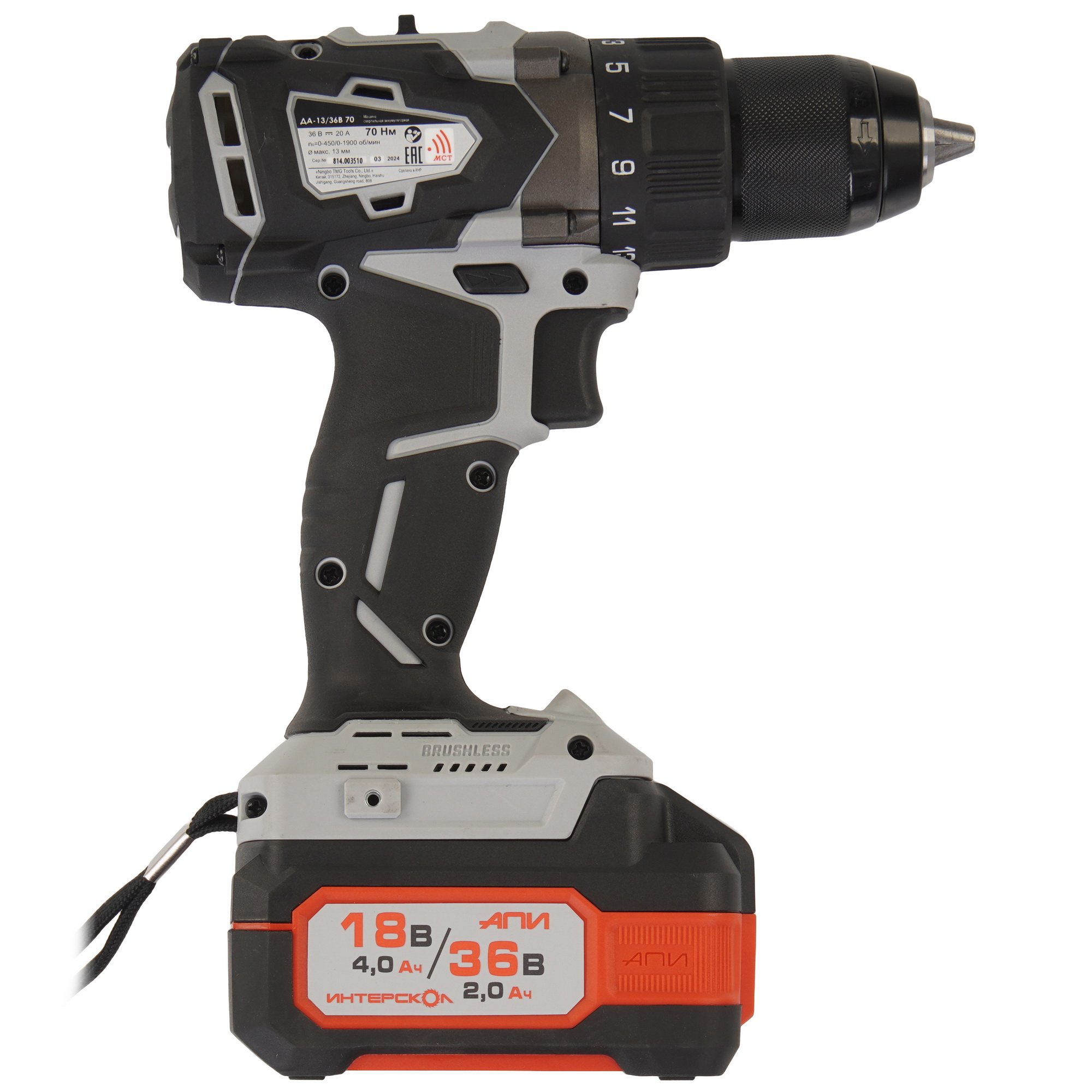 Дрель-шуруповерт аккумуляторная бесщеточная ИНТЕРСКОЛ ДА-13/36В 70 Li-ion АПИ [814.2.2.70] кейс, 2 аккум. 2,0А·ч, ЗУ