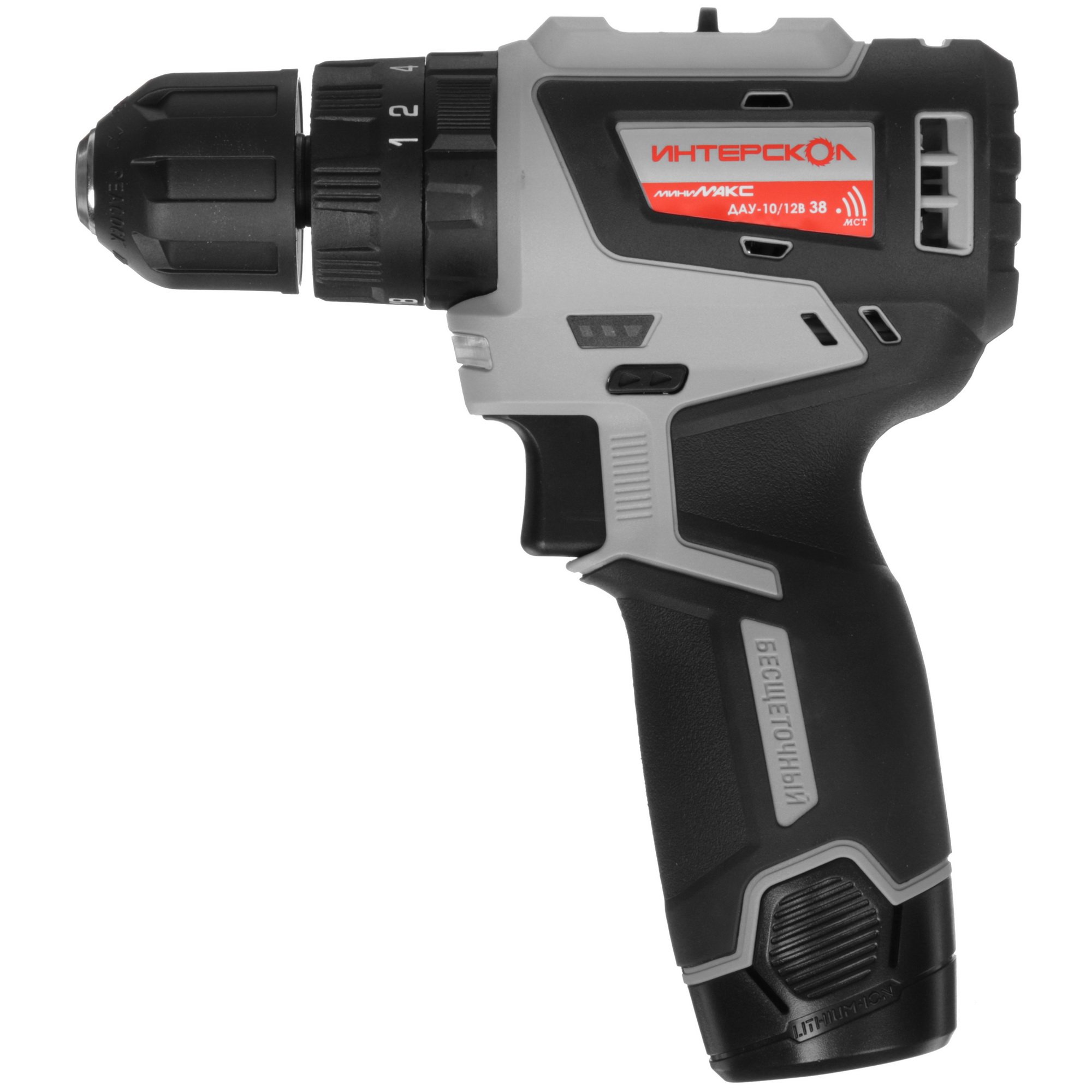 Дрель-шуруповерт аккумуляторная бесщеточная ИНТЕРСКОЛ ДАУ-10/12В 38 МиниМАКС 767.2.2.45 Li-ion, кейс, 2 аккум., 2,5 А·ч, ЗУ