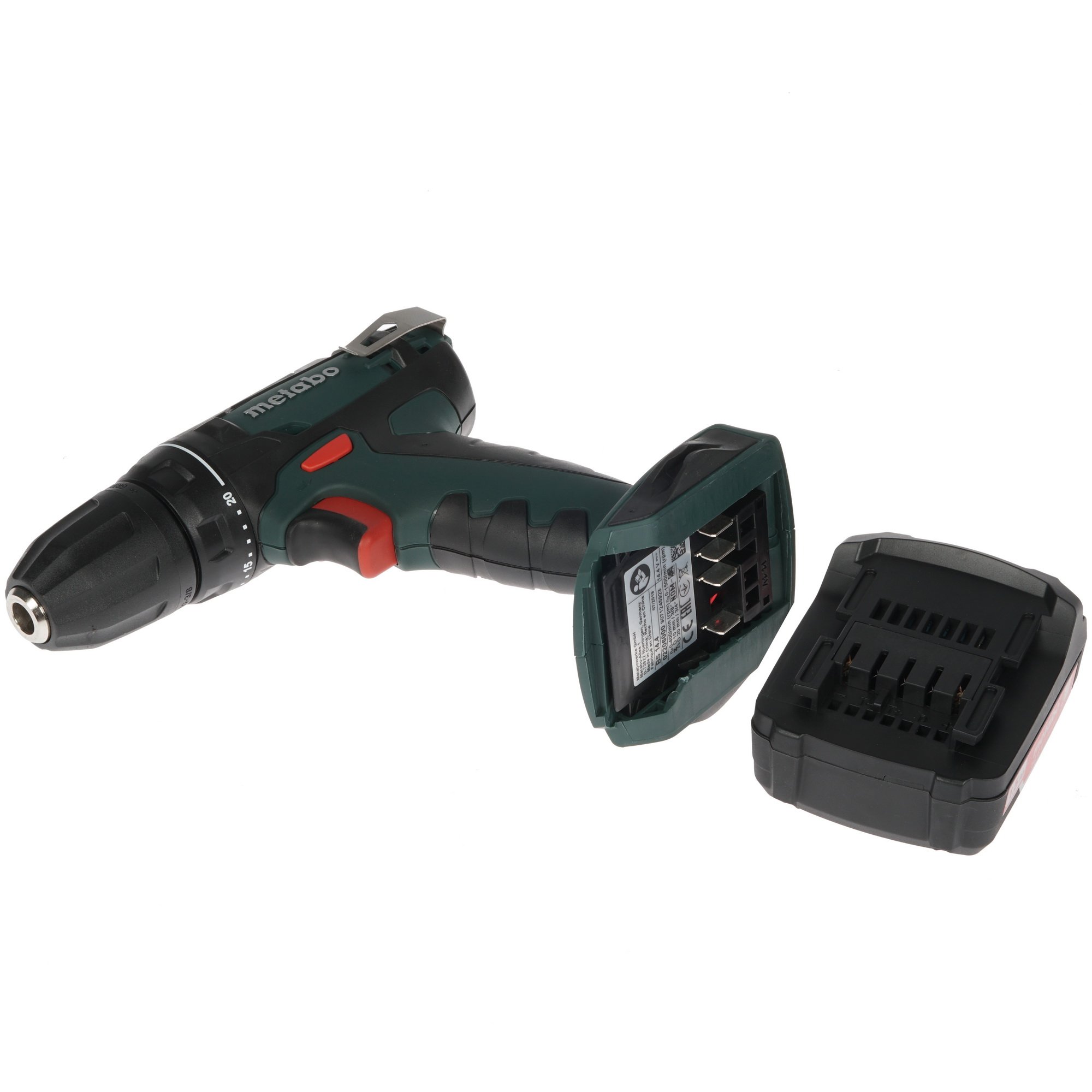 Источник питания дрели-шуруповерта – литий-ионный аккумулятор. В комплект включены 2 батареи, зарядное устройство, кейс и поясная клипса. Незначительная (1200 г) масса инструмента способствует удобству работы. Цвет корпуса дрели-шуруповерта традиционный – темно-зеленый.