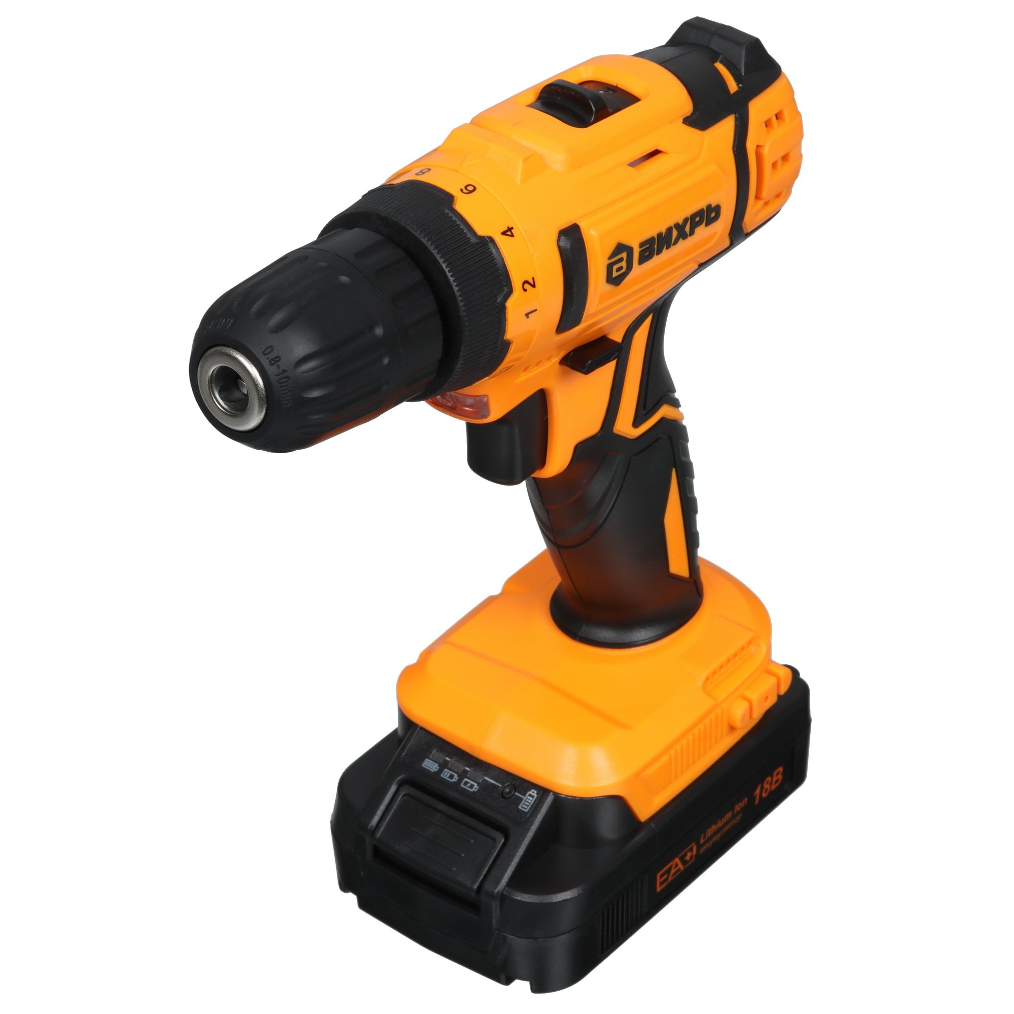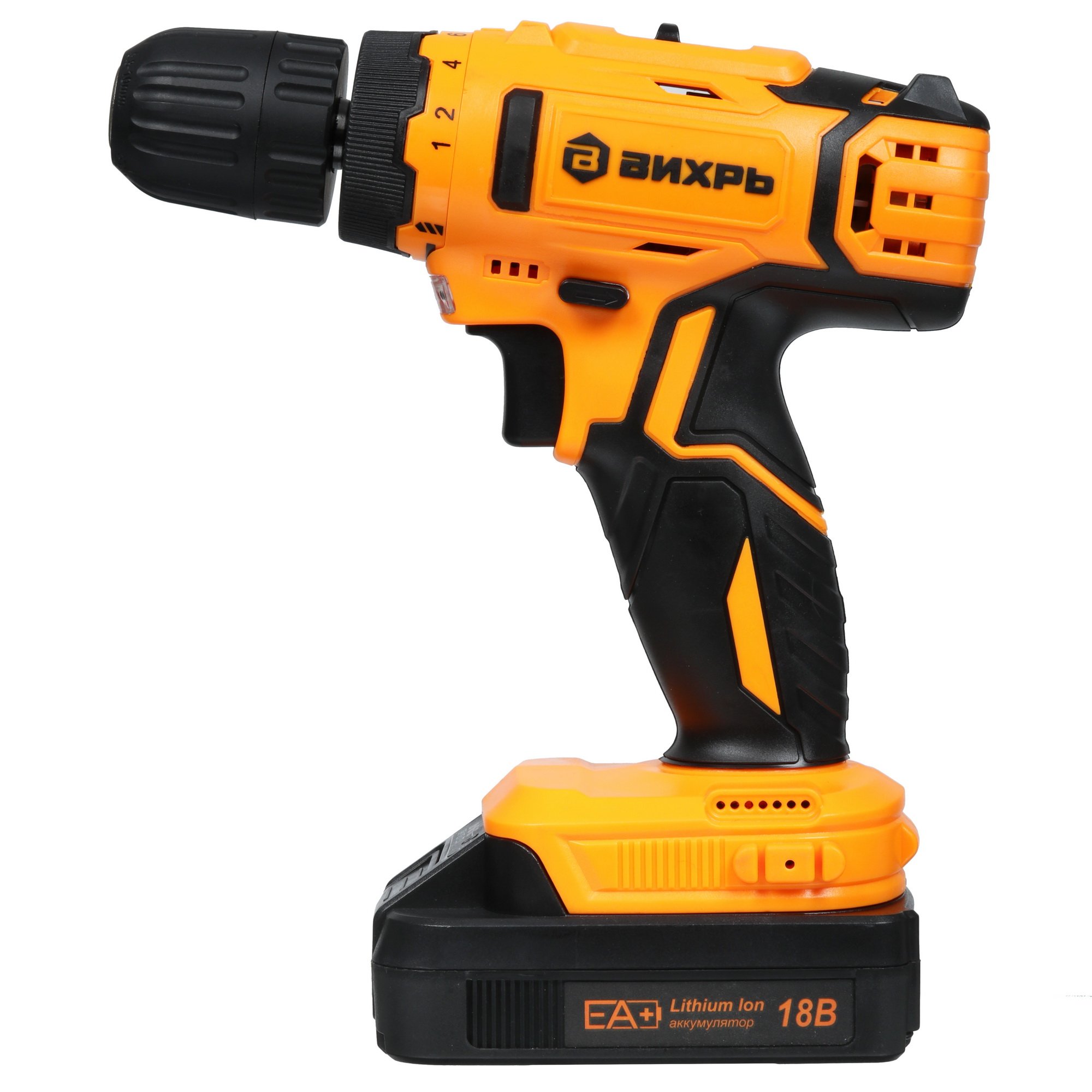 Дрель-шуруповерт Вихрь ДА-18Л-2КА оснащен эффективным двигателем, способным при холостом ходе обеспечить скорость до 1400 об/мин. Для более удобного и аккуратного выполнения работ предусмотрено 2 режима работы мотора, реверс, а также регулятор крутящего момента и глубины закручивания. Фиксация рабочей насадки производится при помощи патрона быстрозажимного типа, отверстие которого может варьироваться от 0.8 до 10 мм. Максимальный диаметр сверления древесины может достигать 30 мм, а металла — 12 мм.