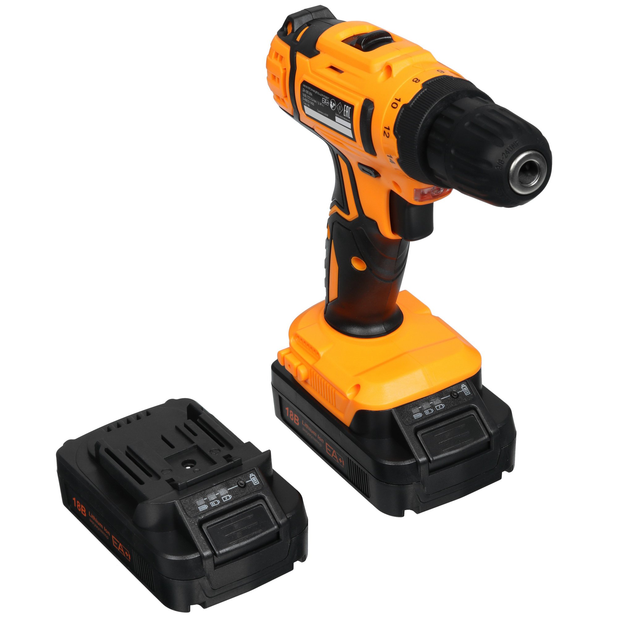 Дрель-шуруповерт аккумуляторная Вихрь ДА-18Л-2КА 72/14/25, Аккумуляторная, 18В, 2 АКБ, Кейс