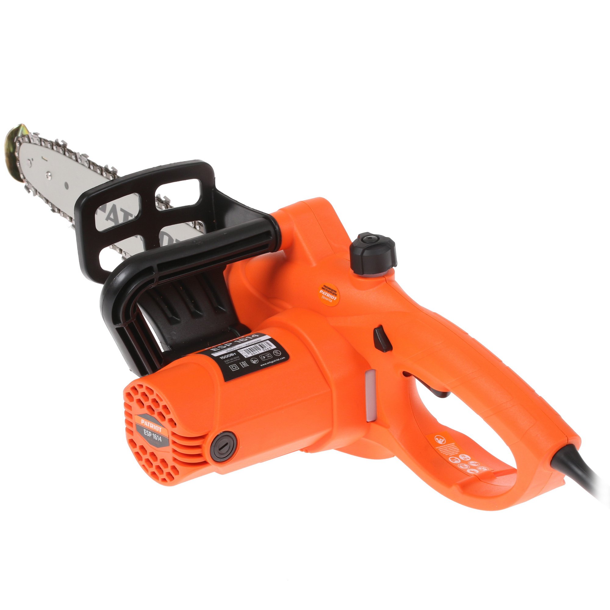Электрическая цепная пила Patriot ESP 1614 может быть полезна частным домовладельцам и другим пользователям, которые нуждаются в возможности пиления древесины, находясь при этом относительно недалеко от источника электричества. Инструмент подойдет для заготовки дров, спиливания деревьев и веток, а также для работы с пиломатериалами. Мощность электродвигателя, которым оснащена пила, равна 1500 Вт. Длина сетевого кабеля – 60 см. Вам будет необходим удлинитель, длину которого вы сможете выбрать, исходя из имеющихся условий работы.