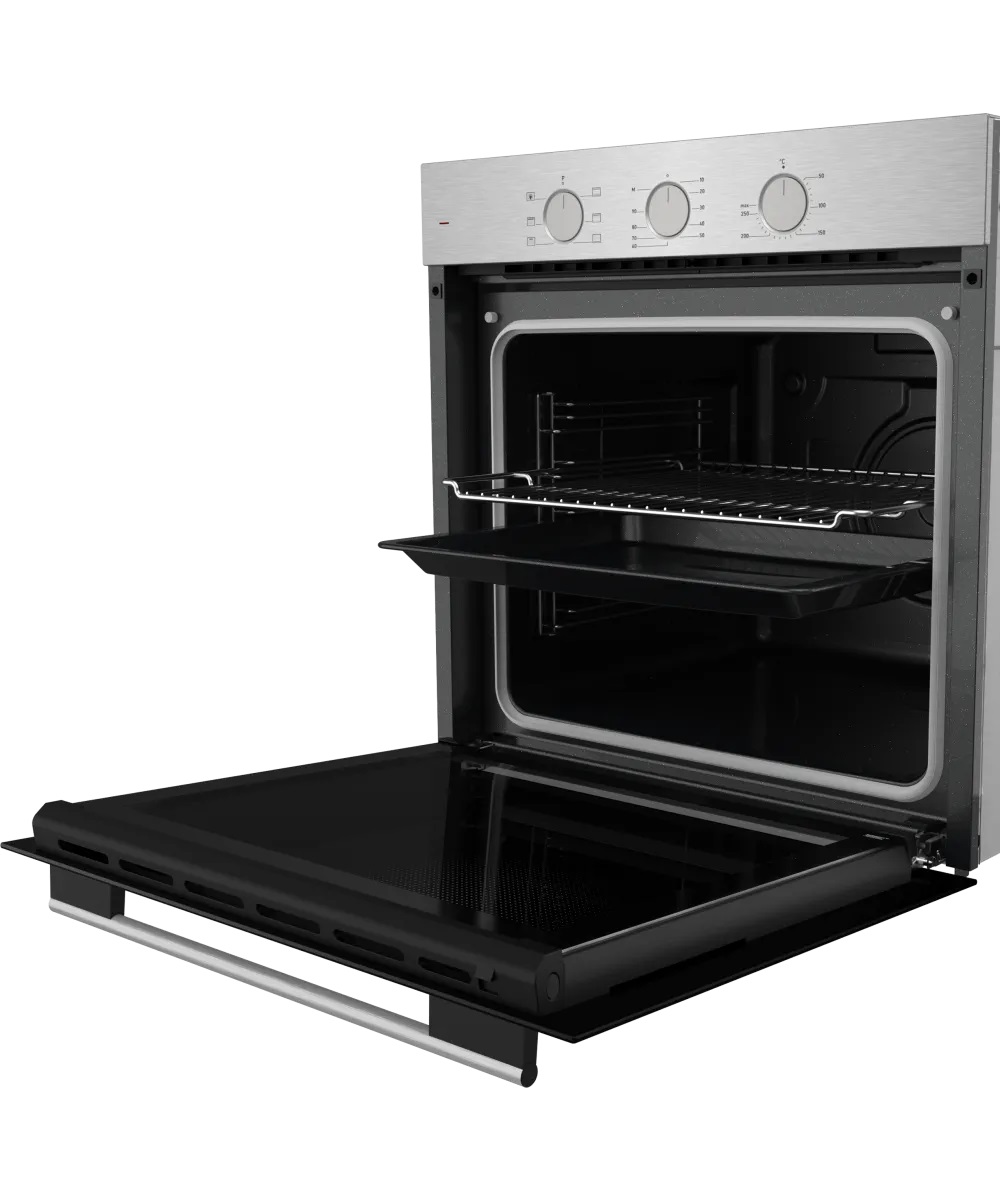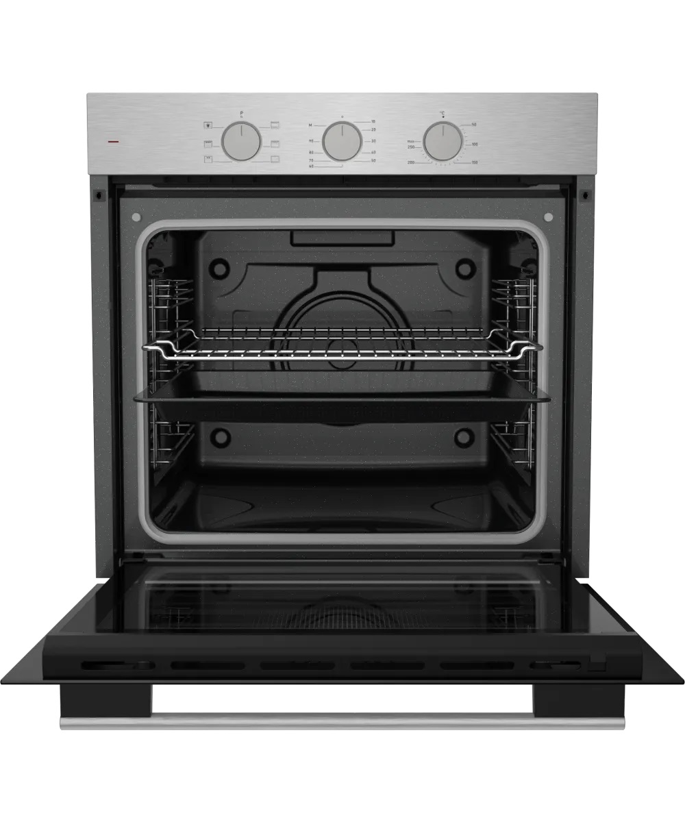 В Kuppersberg HF 603 BX реализовано 6 режимов приготовления. Выбор необходимых параметров приготовления выполняется с помощью поворотных утапливаемых переключателей. Объем духовки составляет 80 л, панель управления изготовлена из нержавеющей стали. Панель дополнена таймером.