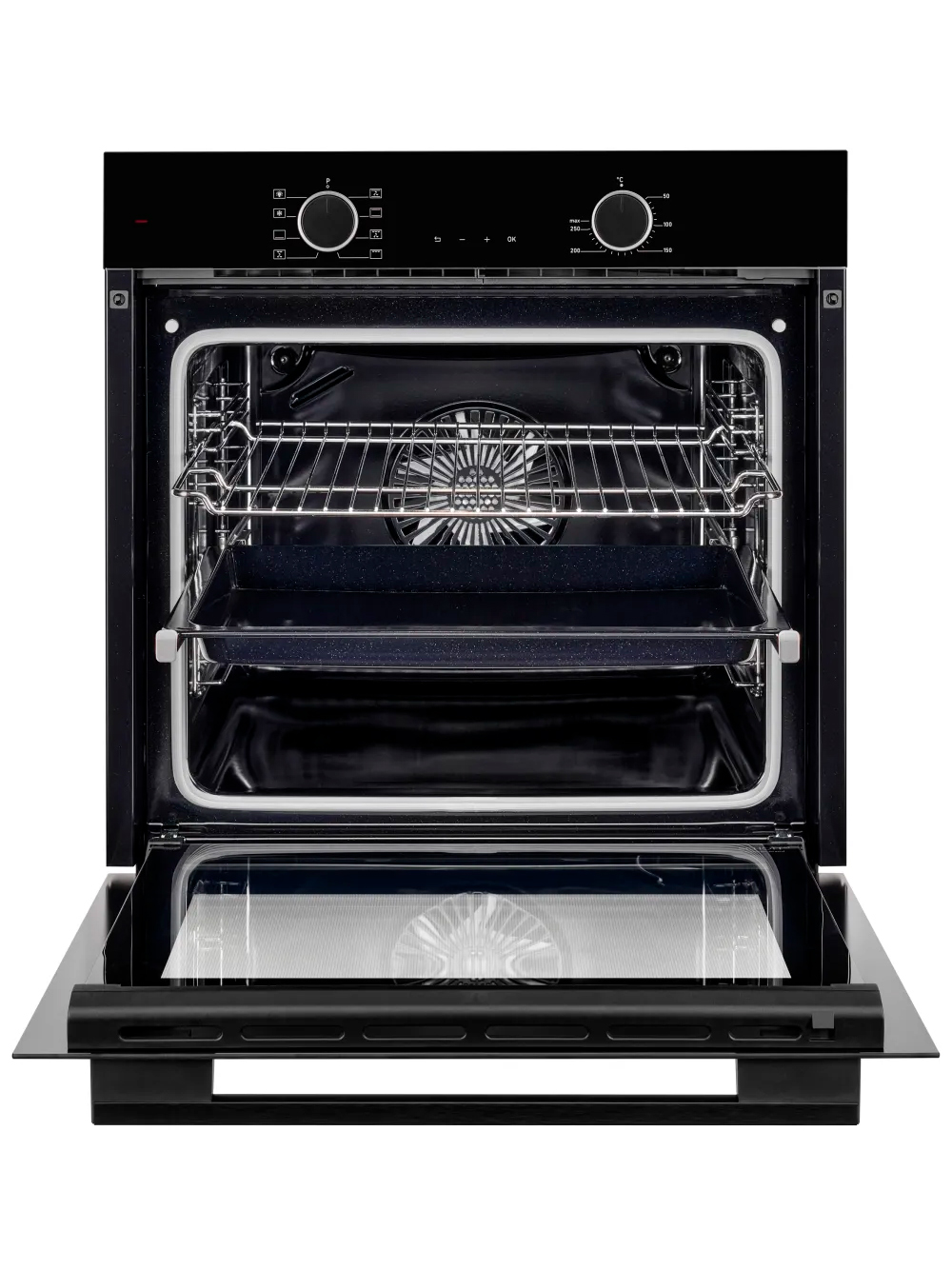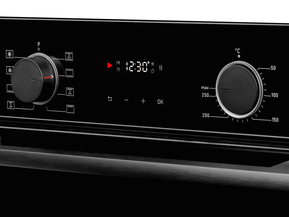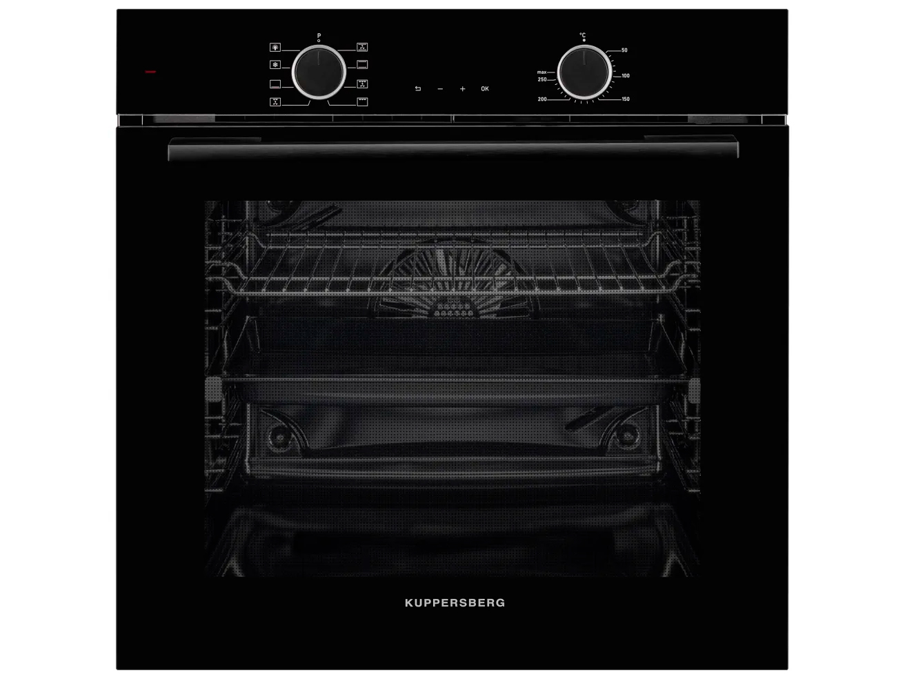 В Kuppersberg HF 608 B реализовано 8 режимов приготовления. Дисплей, поворотные переключатели и сенсорная панель облегчат процесс выбора необходимых параметров работы устройства. Объем духовки составляет 80 л, панель управления изготовлена из стекла.