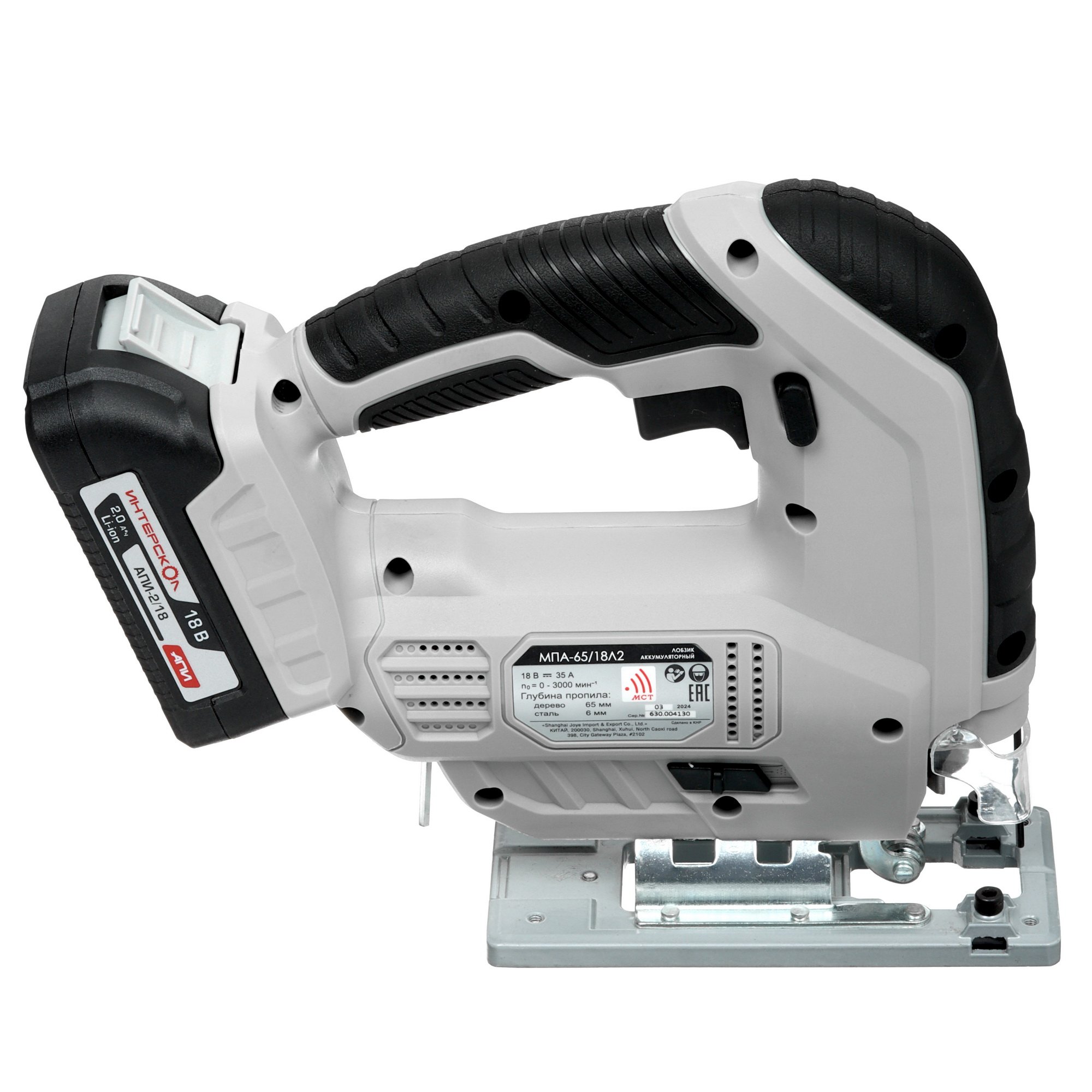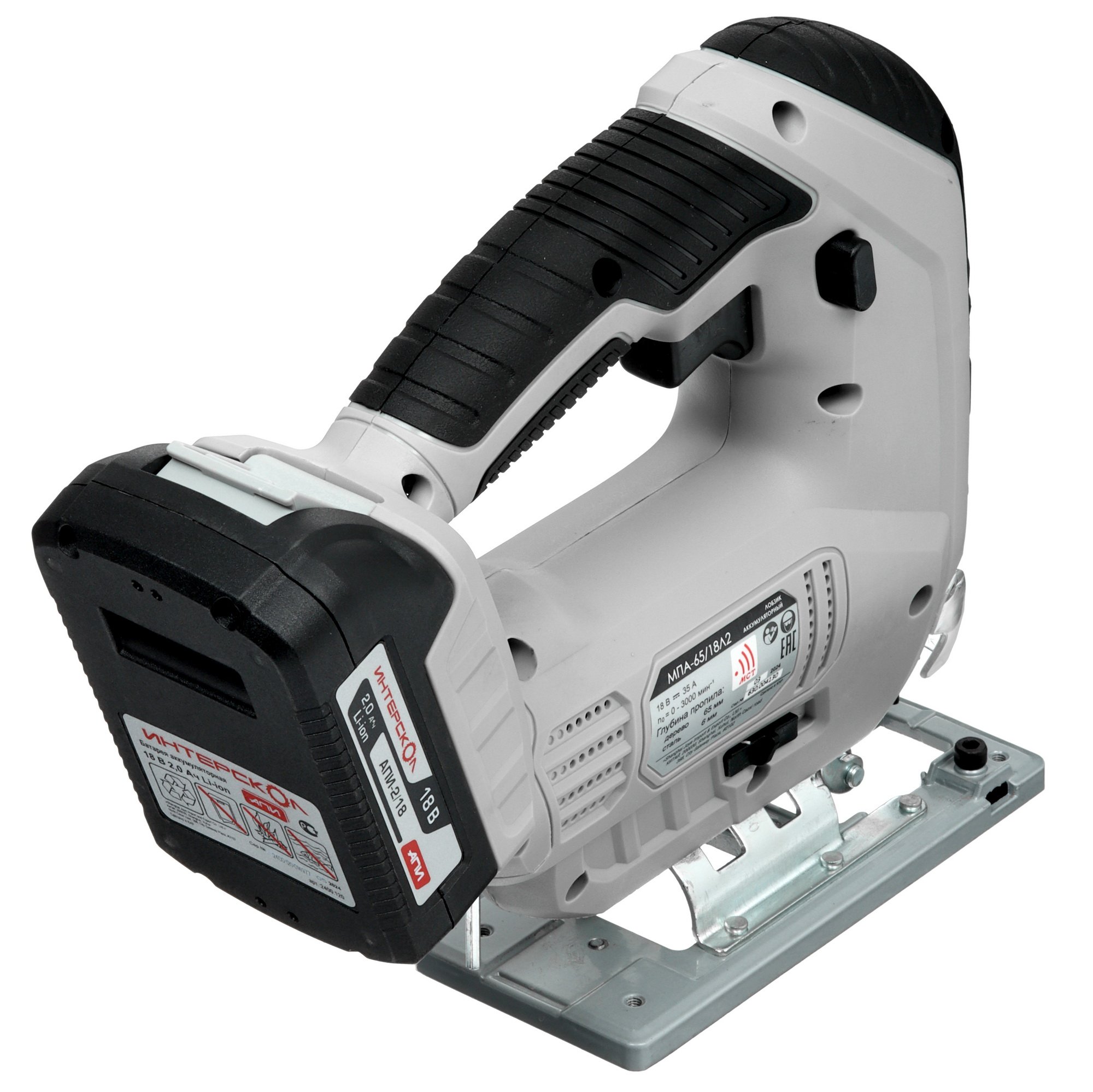 Электрический лобзик ИНТЕРСКОЛ МПА-65/18Л2 АПИ 18V предназначен для резки и раскроя пиломатериалов, плит ДСП, ЦСП, МДФ, а также для работы с фасонным стальным профилем и заготовками из пластика. Щеточный мотор обеспечивает до 3000 ходов пилки в минуту, его мощности достаточно для пропила дерева толщиной 65 мм и металла в 6 мм. Благодаря режиму маятникого хода при прямых и слабоизогнутых резах снижается трение и уменьшается нагрузка на двигатель. Инструмент работает от аккумулятора, благодаря чему его можно использовать вне помещений или на объектах, где нет доступа к электричеству.
