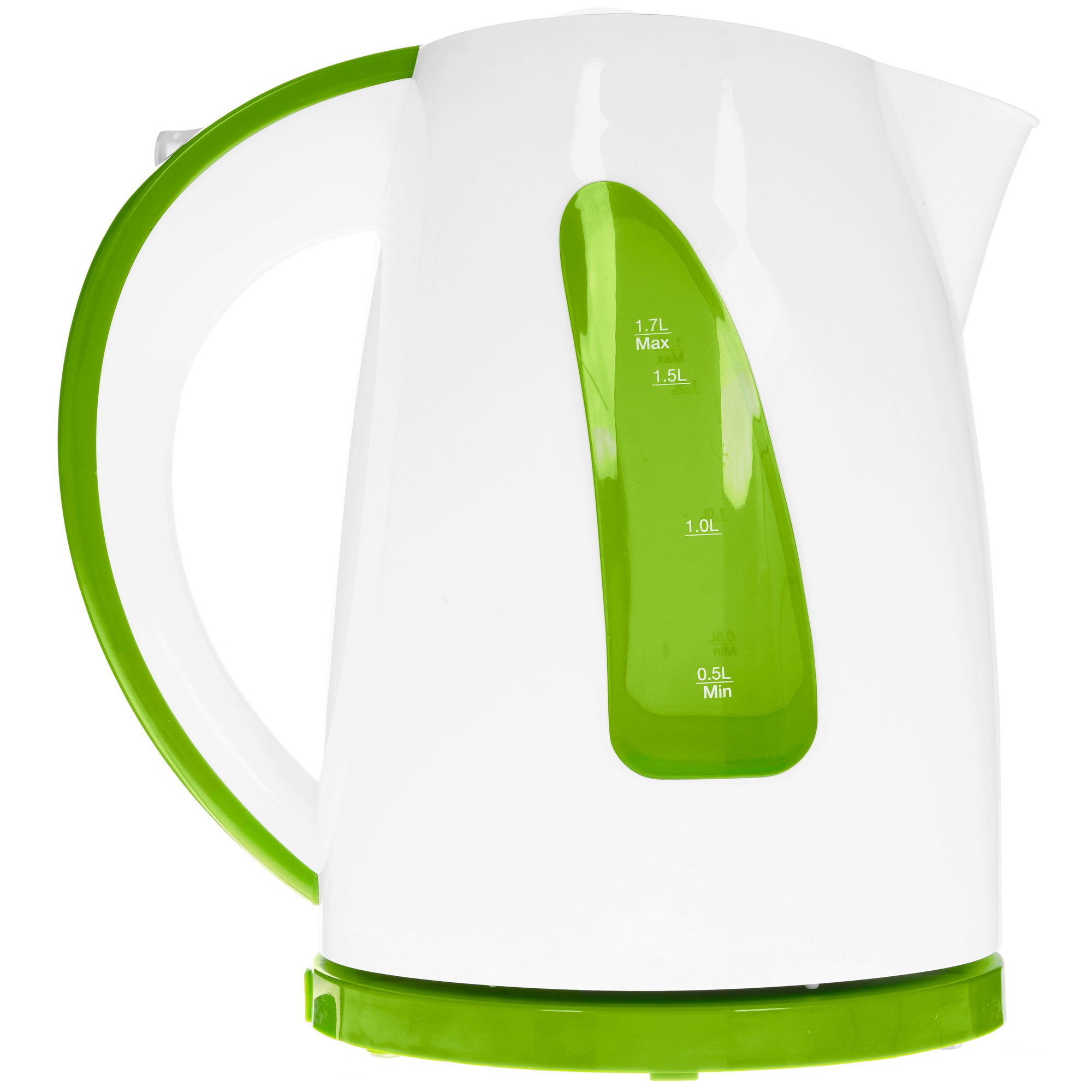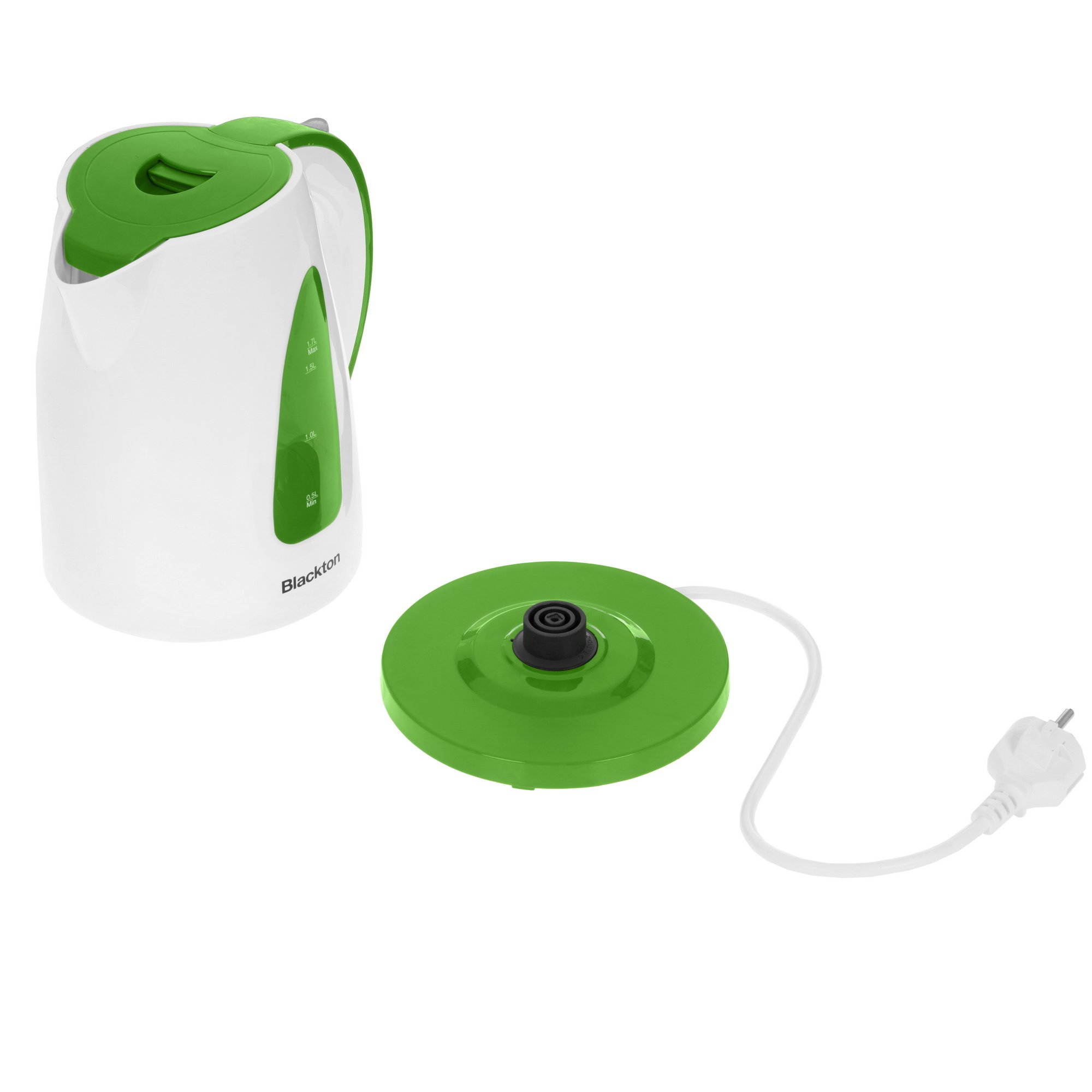 Электрочайник Blackton Bt KT1706P в пластиковом корпусе зеленого цвета оснащен мерной шкалой, которая позволяет контролировать остаток воды в 1.7-литровом резервуаре. Расположенный в носике фильтр предупреждает попадание частиц накипи в чашку с кофе или чаем. Температура нагрева жидкости достигает 100 °C.