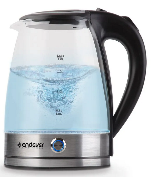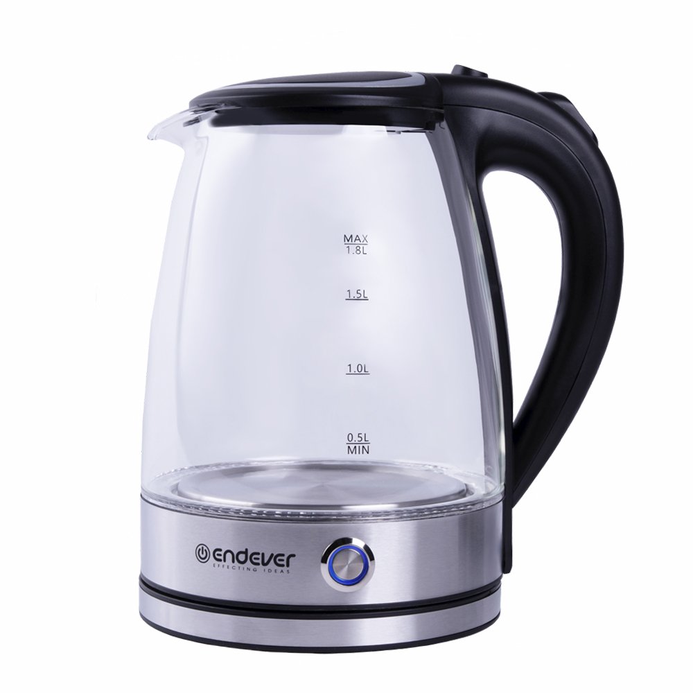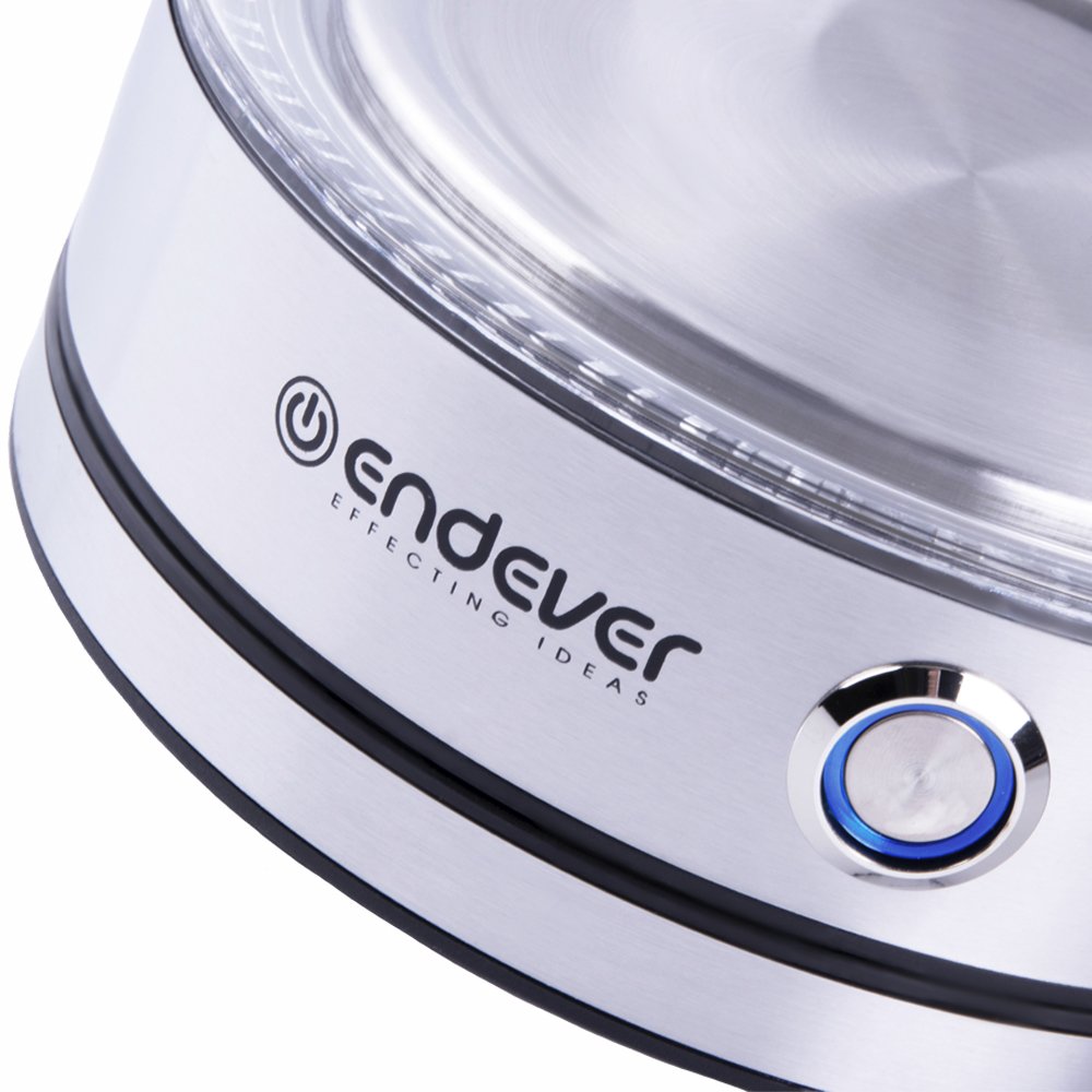 Электрический чайник Endever Skyline KR-345G очень прост в использовании и обладает всеми необходимыми функциями. Высокая мощность 2200 Вт позволяет молниеносно вскипятить объем воды в 1, 8 литров, благодаря чему Вы сможете напоить вкуснейшими напитками большую компанию. Корпус чайника выполнен из термостойкого стекла и нержавеющей стали. Качественные материалы исполнения этой модели делают ее долговечной в использовании, а светодиодная подсветка украсит Ваш интерьер яркими нотками. Главными преимуществами модели являются также скрытый нагревательный элемент, автоматическое отключение при закипании и световой индикатор включения. Чайник KR-345G может не только вскипятить воду, но и поддерживать температуру от 60 до 95 °C., которая представлена в необычном исполнении в виде отдельной кнопки с яркой подсветкой. Данная модель имеет беспроводное соединение, которое позволяет вращать его на подставке на 360 градусов, что делает эту устройство еще более удобным и безопасным.