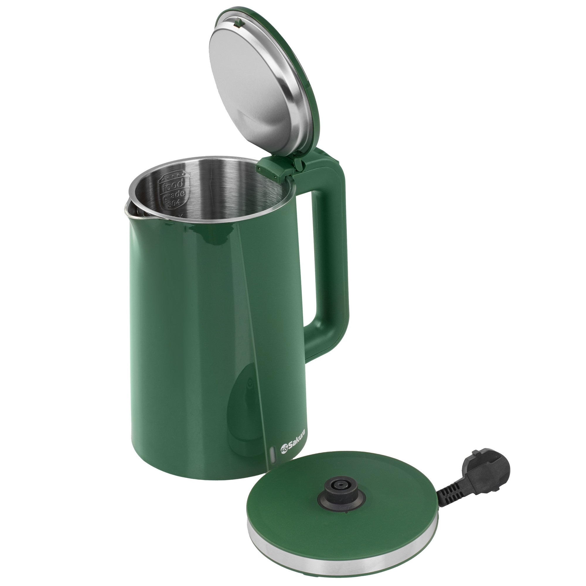 Объем 1.7 л, 1850-2200 Вт, дисковый нагревательный элемент, двухслойный корпус, эффект термоса (быстрее нагревается и дольше удерживает тепло), термоизолированная поверхность, отключение при закипании/без воды, световой индикатор работы, внутренний индикатор уровня воды, вращение на 360°.