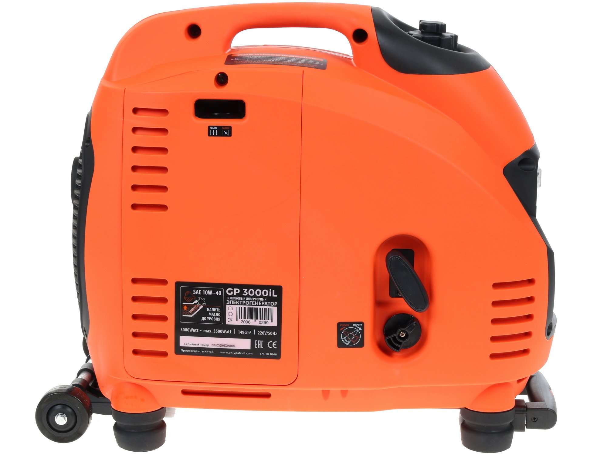Электрогенератор бензиновый инверторный Patriot 3000il, 3.5 кВт, 63 дБ, 31.5 кг