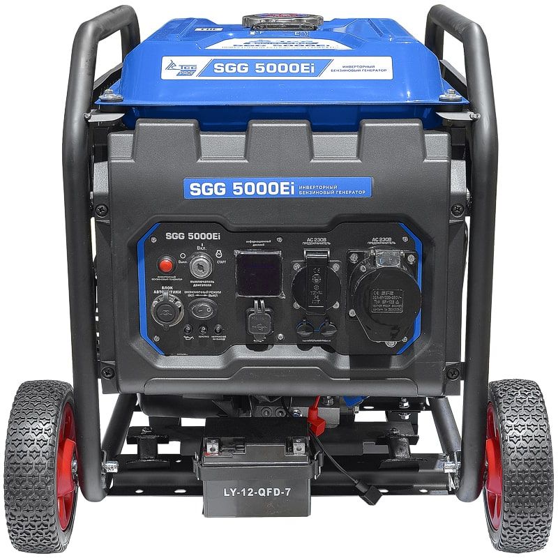 Бензогенератор инверторный SGG 5000Ei с электростартом, коннектором для подключения АВР, укомплектован колесным комплектом для удобства перемещения. Бензиновый генератор предназначен для подключения к нему потребителей тока общей максимальной мощностью до 5,5 кВт. Позволяет напрямую подключать к генератору как обычных потребителей, так и точное электронное оборудование, например, ноутбуки, LCD-телевизоры или смартфон.
