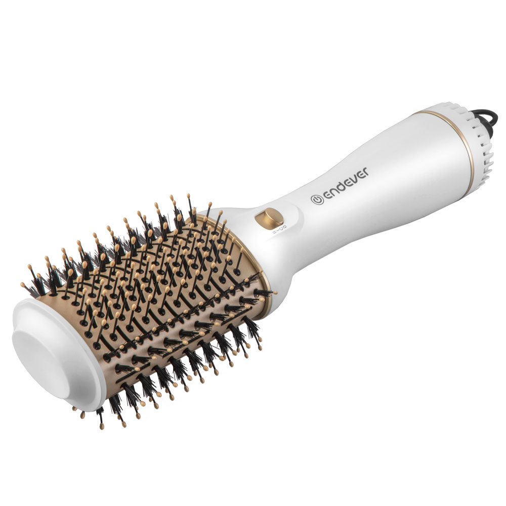 Endever Aurora-500 оснащен безопасным наконечником для безопасного использования стайлера. так же у нашей фен-щетки установлено специальное шарнирное соединения для вращения шнура на 360 градусов, чтобы он не запутывался во время использования стайлера, а также на шнуре есть специальная петелька, благодаря которой Вы легко сможете разместить прибор в ванной комнате или любом другом помещении.