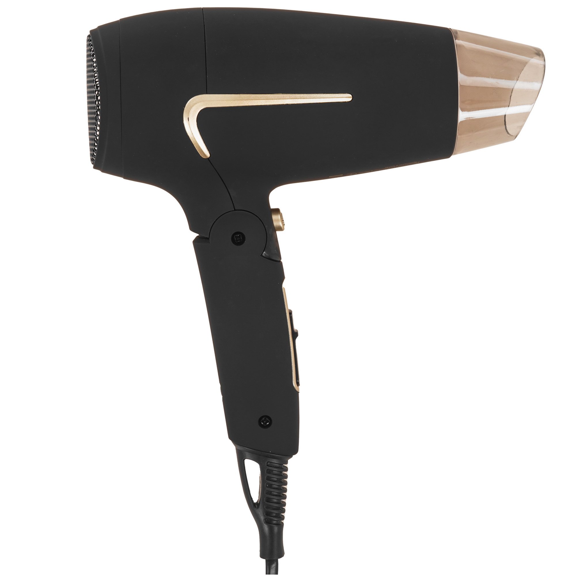 Фен этой модели оснащен съемным фильтром, который можно периодически вынимать и чистить от скопившейся пыли. Ручка прибора складывается для большей компактности, что удобно, если вы планируете брать фен в дорогу. Для хранения устройства в ванной или кладовой есть петля для подвешивания на крючок.