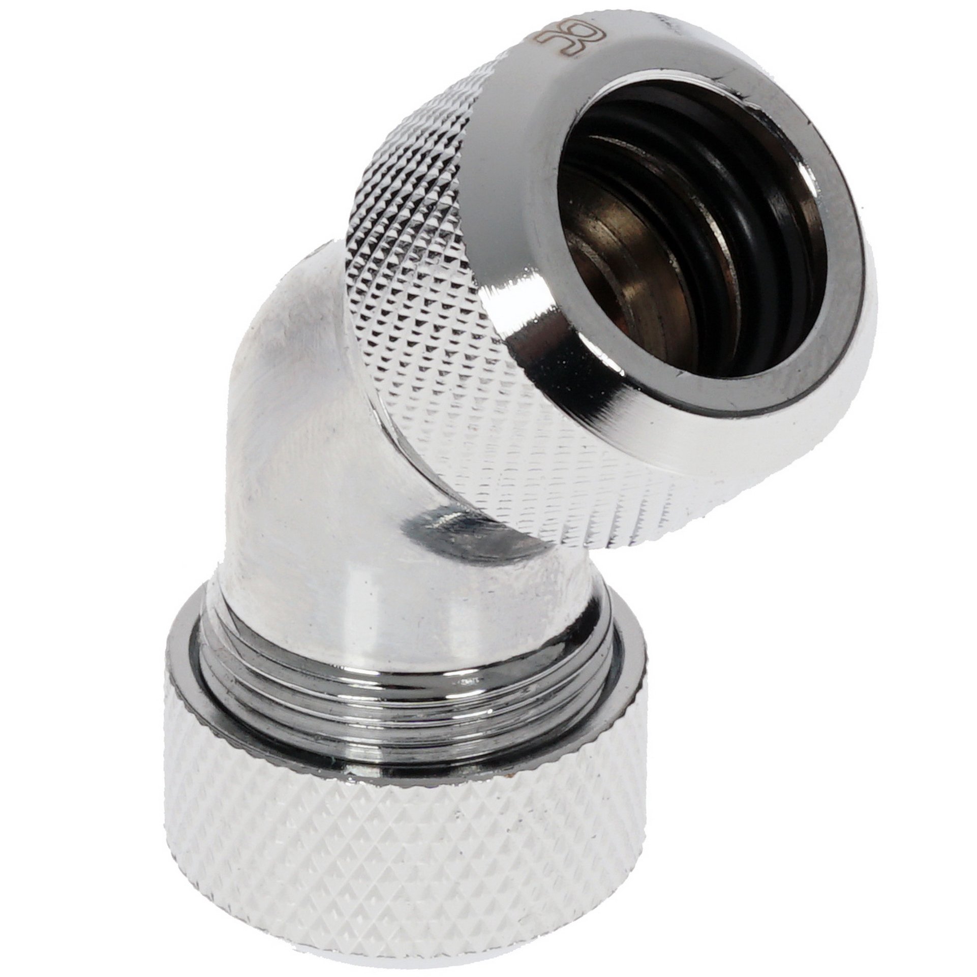 Фитинг для СВО Alphacool Eiszapfen 13mm HardTube Anschraubtulle 45° L-Verbinder станет незаменимым элементом при сборке систем водяного охлаждения как начального, так и профессионального уровня. Данная модель позволяет легко соединять жесткие трубки диаметром 13 мм. Отличительной особенностью фитинга является угловая конструкция, что позволяет прокладывать систему охлаждения в углах, а также других труднодоступных местах корпуса системного блока. Для герметичности соединения в конструкции предусмотрен резиновый уплотнитель, а простая форма и рельефная поверхность делают установку изделия более простой и удобной.