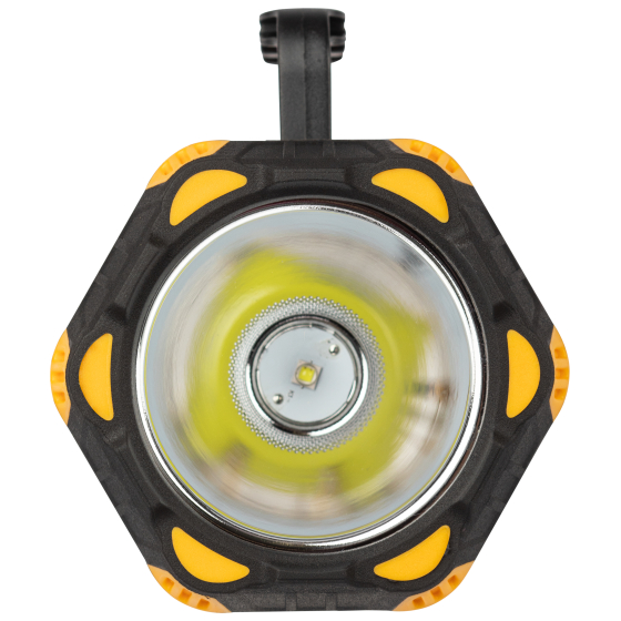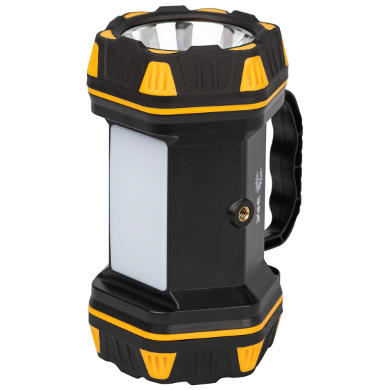 ЭРА «Практик» PA-808 – многофункциональный прожекторный фонарь с ёмким литиевым аккумулятором. Имеет множество режимов свечения: основной свет (100% яркости и 50% яркости), боковой свет (100% яркости и 50% яркости), свет с обратной стороны (100% яркости, 50% яркости, красный свет, красный мигающий). Всего – 65 светодиодов для создания яркой практичной подсветки. Этот фонарь имеет различные крепления и поможет организовать качественное портативное освещение в любой ситуации. Предусмотрено гнездо под штатив. Ещё одно преимущество – возможность использовать фонарь ЭРА PA-808 в качестве пауэрбанка для оперативной подзарядки мобильных устройств. Сам фонарь удобно заряжается при помощи кабеля microUSB и непрерывно светит от одного полного заряда до 15 часов. Имеется индикатор заряда