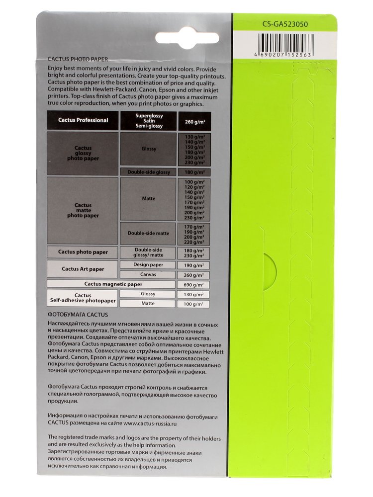 Фотобумага Cactus CS-GA523050 A5/230г/м2/50л. глянцевая для струйной печати
