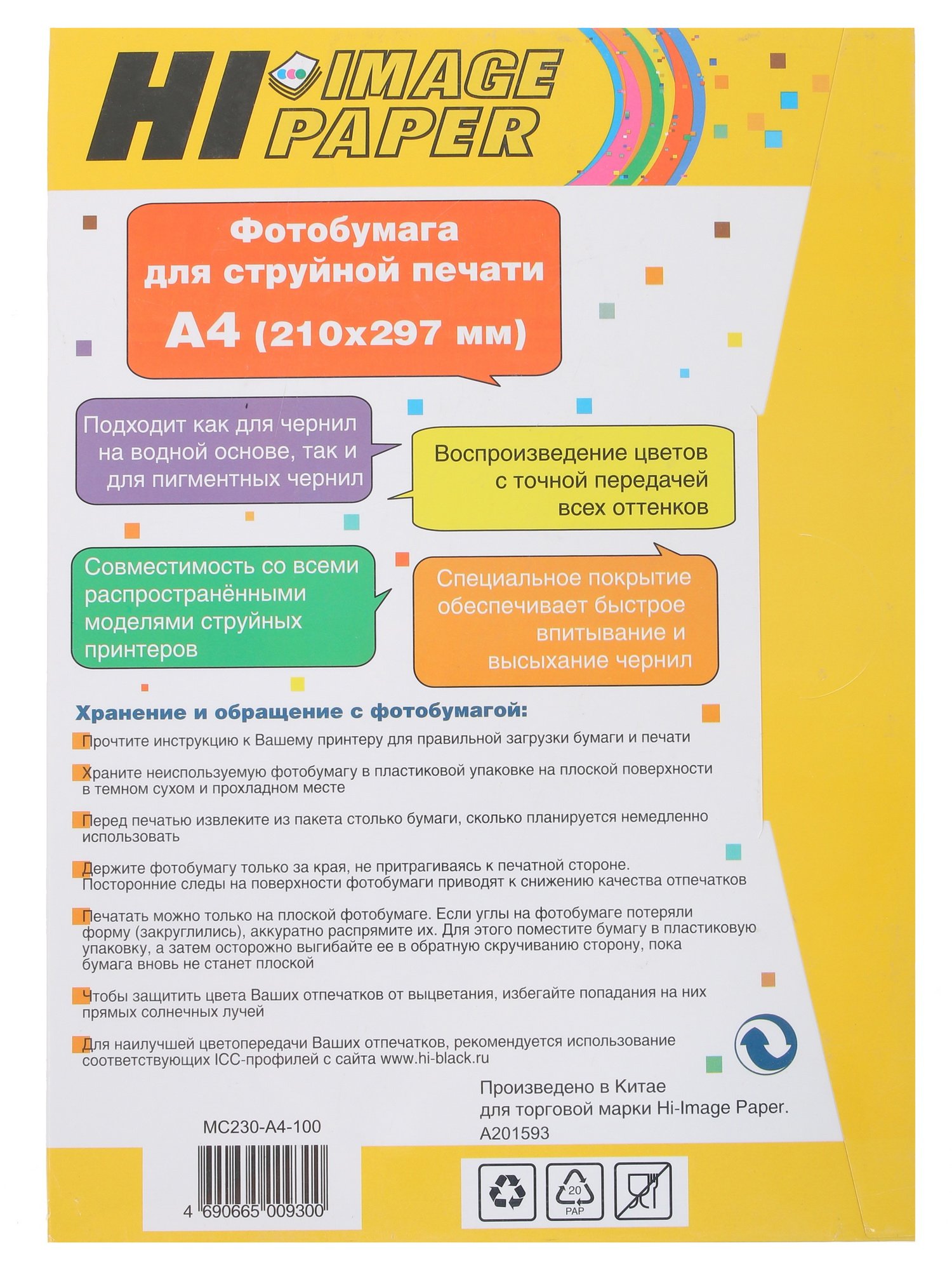 Фотобумага матовая односторонняя (Hi-image paper) A4, 230 г/м, 100 л.