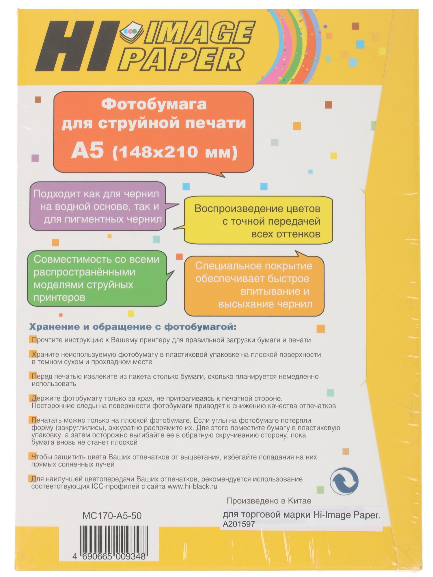 Фотобумага матовая односторонняя (HI-image paper) A5 (148х210) 170 г/м 50л