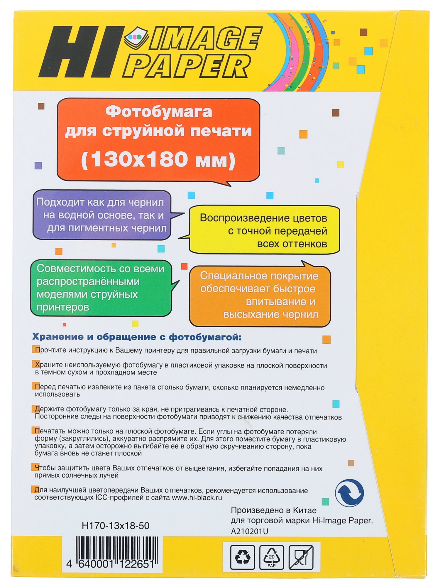 Фотобумага глянцевая односторонняя (Hi-image paper) 13x18, 170 г/м, 50 л.