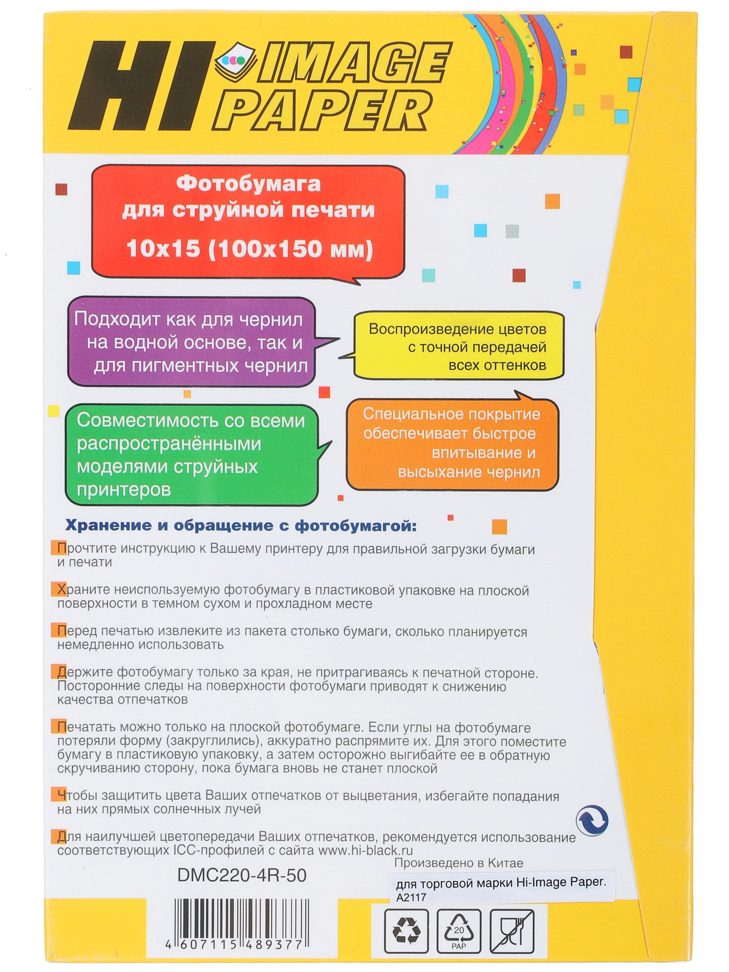 Бумага Hi-Black A2117 матовая двусторонняя (Hi-image paper) 10x15, 220 г/м, 50 л. DMC220-4R-50