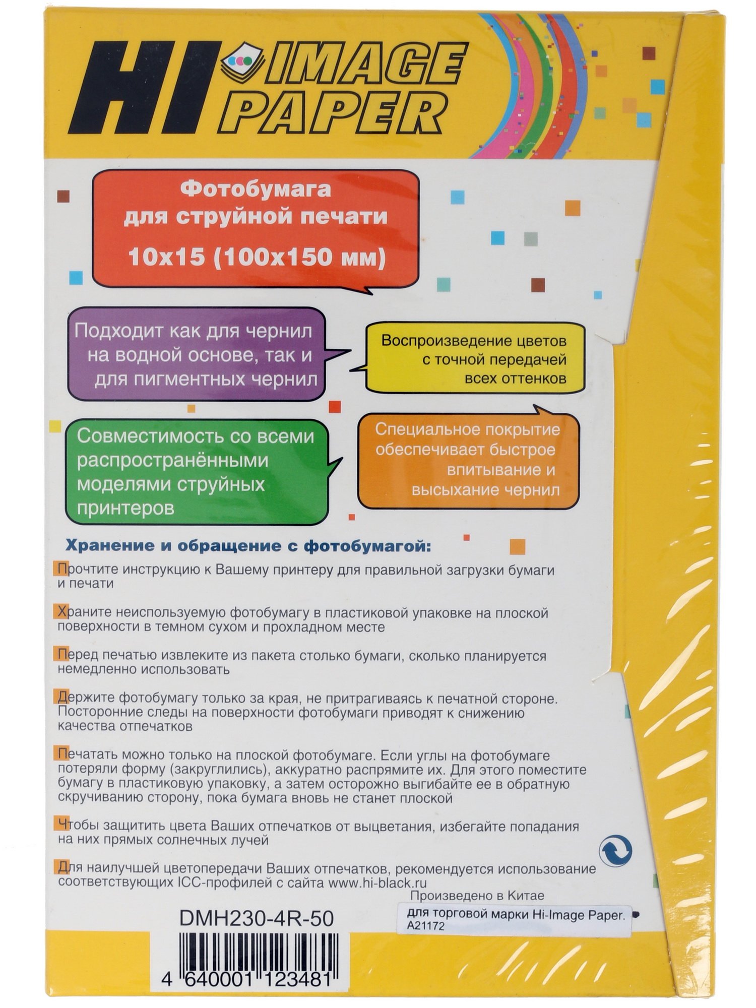 Фотобумага глянц/матовая двусторонняя (Hi-image paper) 10x15, 230 г/м, 50 л.