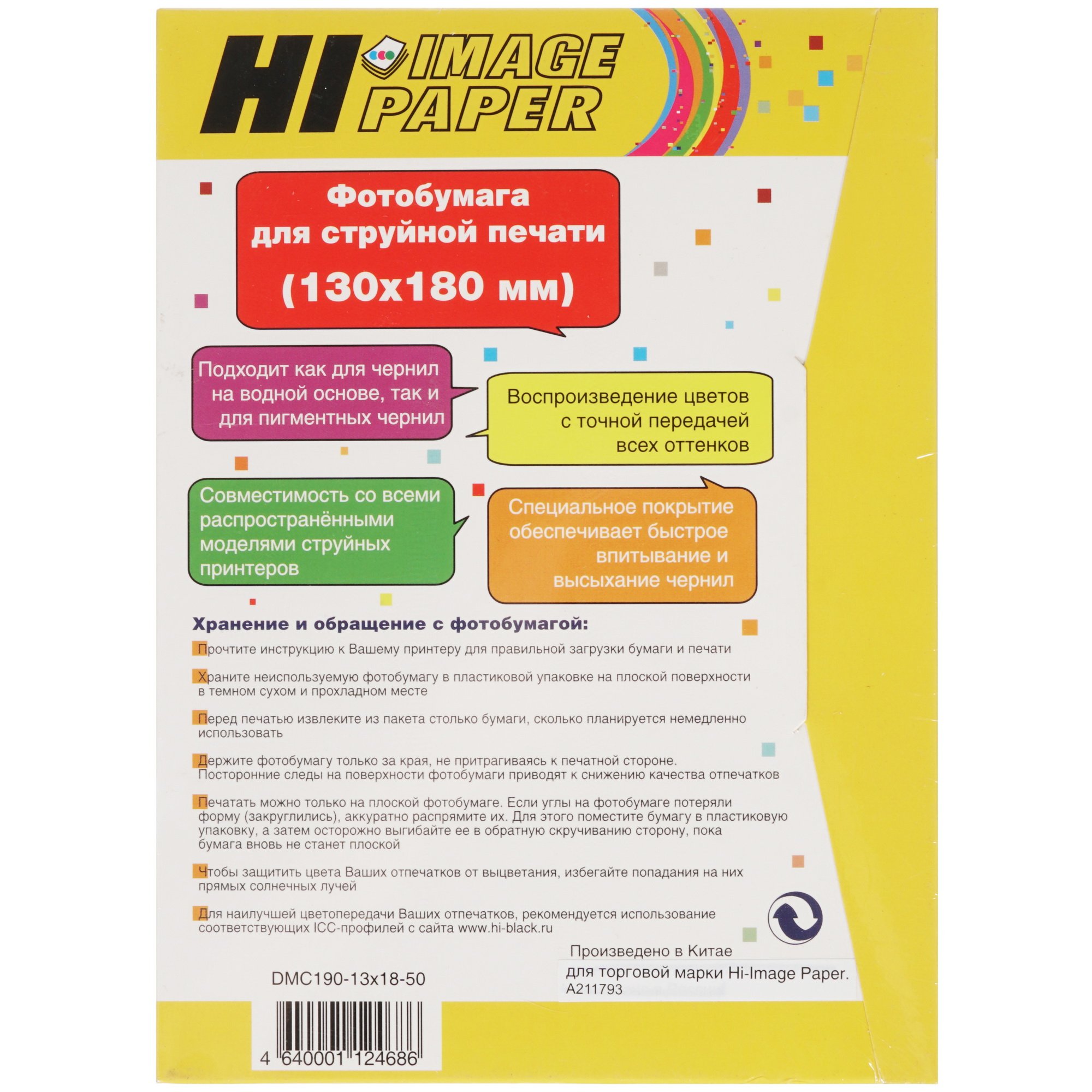 Одним из немаловажных факторов качественной печати являются не только качественные чернила, но и правильно подобранный бумажный материал. Фотобумага Hi-image paper A211793 предназначена для струйной цветной печати как водными, так и пигментными чернилами. Отличительной особенностью данного бумажного материала является точная передача цветов, быстрое впитывание и высыхание за счет особого верхнего покрытия, а также высокая плотность, соответствующая 190 г/м². Благодаря этому листы не просвечивают, не промокают и не деформируются под воздействием различных типов чернил, а особое верхнее покрытие препятствует появлению визуальных дефектов.