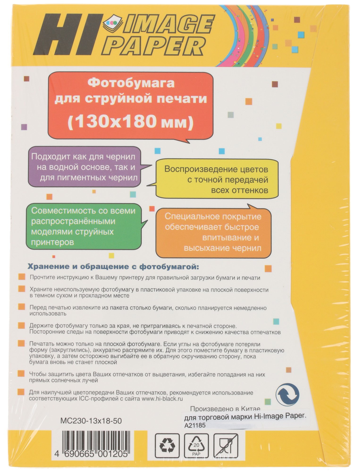Фотобумага матовая односторонняя (Hi-image paper) 13х18, 230 г/м, 50 л.