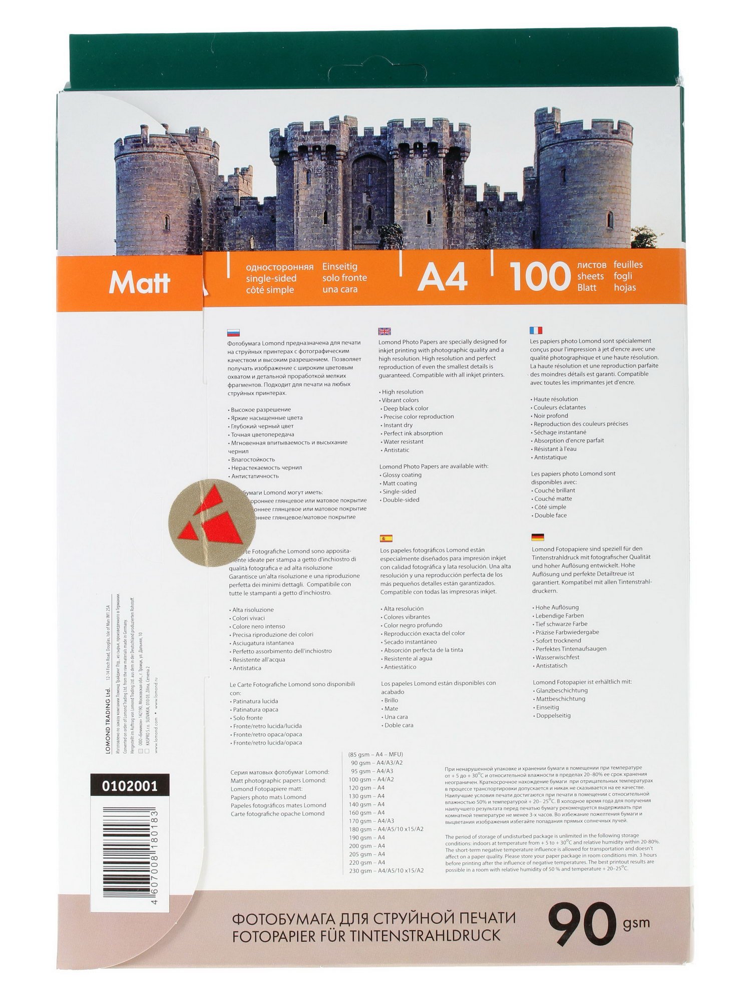 Фотобумага Lomond 0102001 имеет матовое одностороннее покрытие, которое отлично подойдет для печати рекламных листов, фотопортретов, фотореалистичных проспектов и многого другого. Чернила быстро сохнут и впитываются, поэтому обратную сторону листа можно использовать практически сразу.