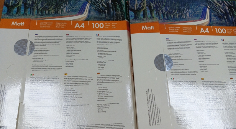 Матовые листы прекрасно подходят для печатных материалов с текстом. Подобное покрытие снижает нагрузку на глаза при чтении. Но они несколько уступают глянцу в плане передачи цветов. Число листов в упаковке – 100 штук.