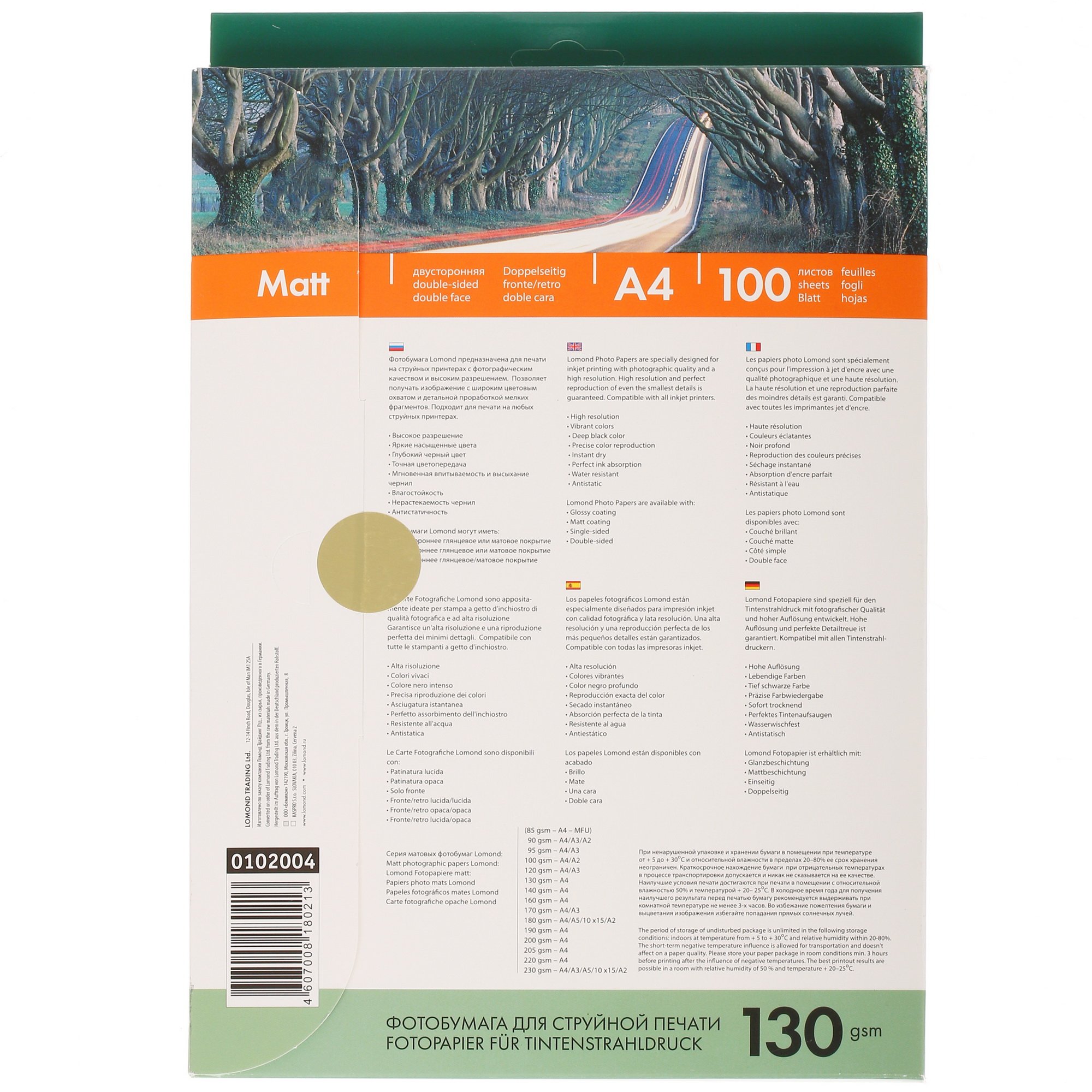 Фотобумага Lomond 0102004 A4/130г/м2/100л./белый матовое/матовое для струйной печати