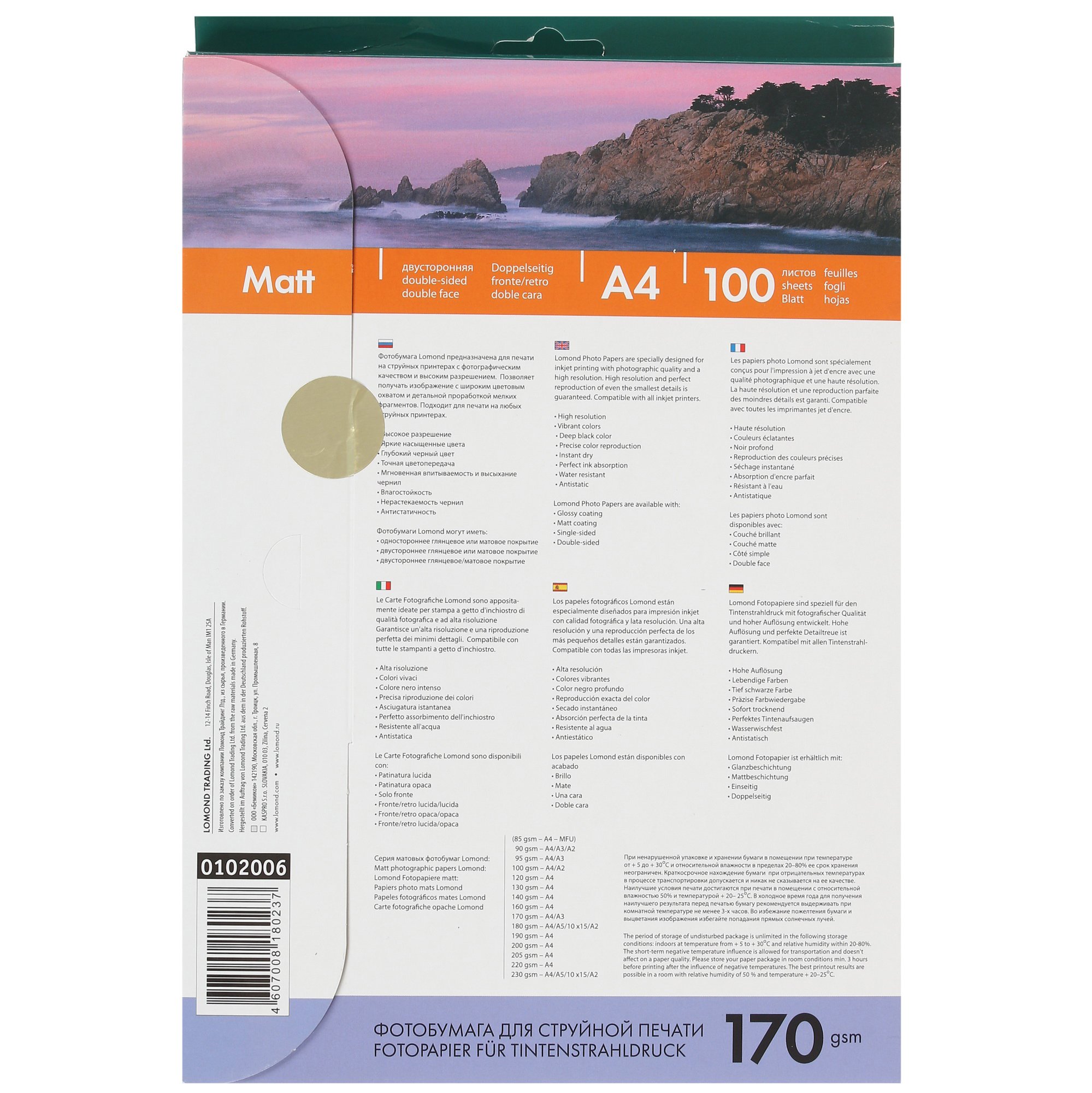 Фотобумага Lomond 0102006 A4/170г/м2/100л./белый матовое/матовое для струйной печати