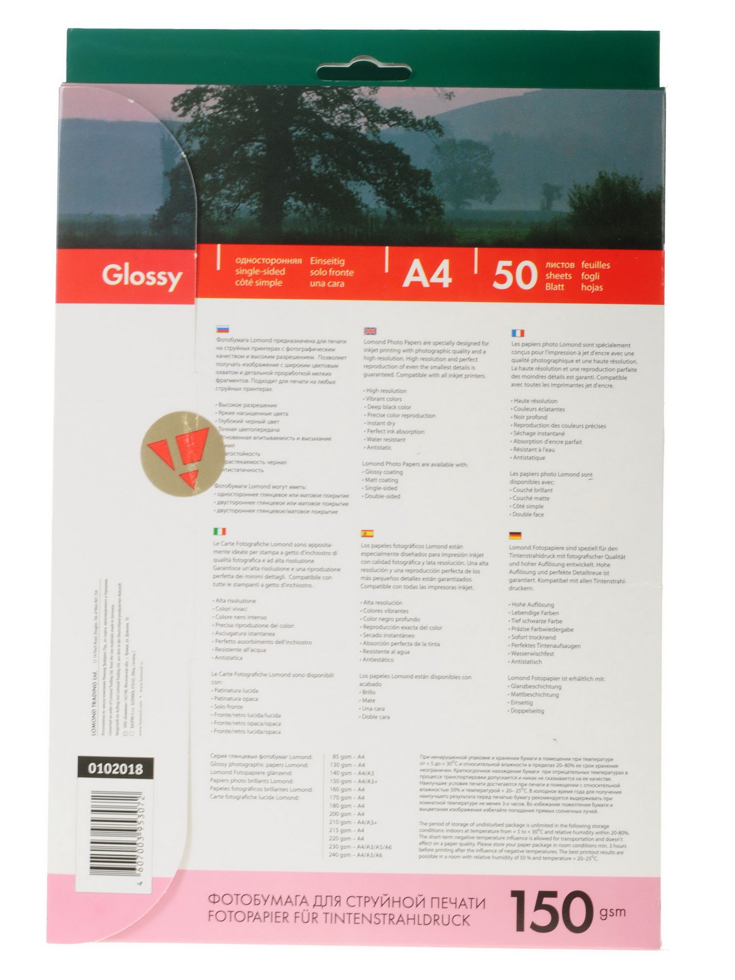 Фотобумага Lomond 0102018 имеет одностороннее глянцевое покрытие, которое придаст Вашим отпечаткам характерный блеск. Благодаря ему изображения будут выглядеть фотореалистично, иметь насыщенные и яркие цвета. Такие отпечатки долго прослужат и будут сохранять свои цвета. Глянцевая бумага лучше всех соответствует фотографии. Это наилучший вариант для печати фотореалистичных изображений.
